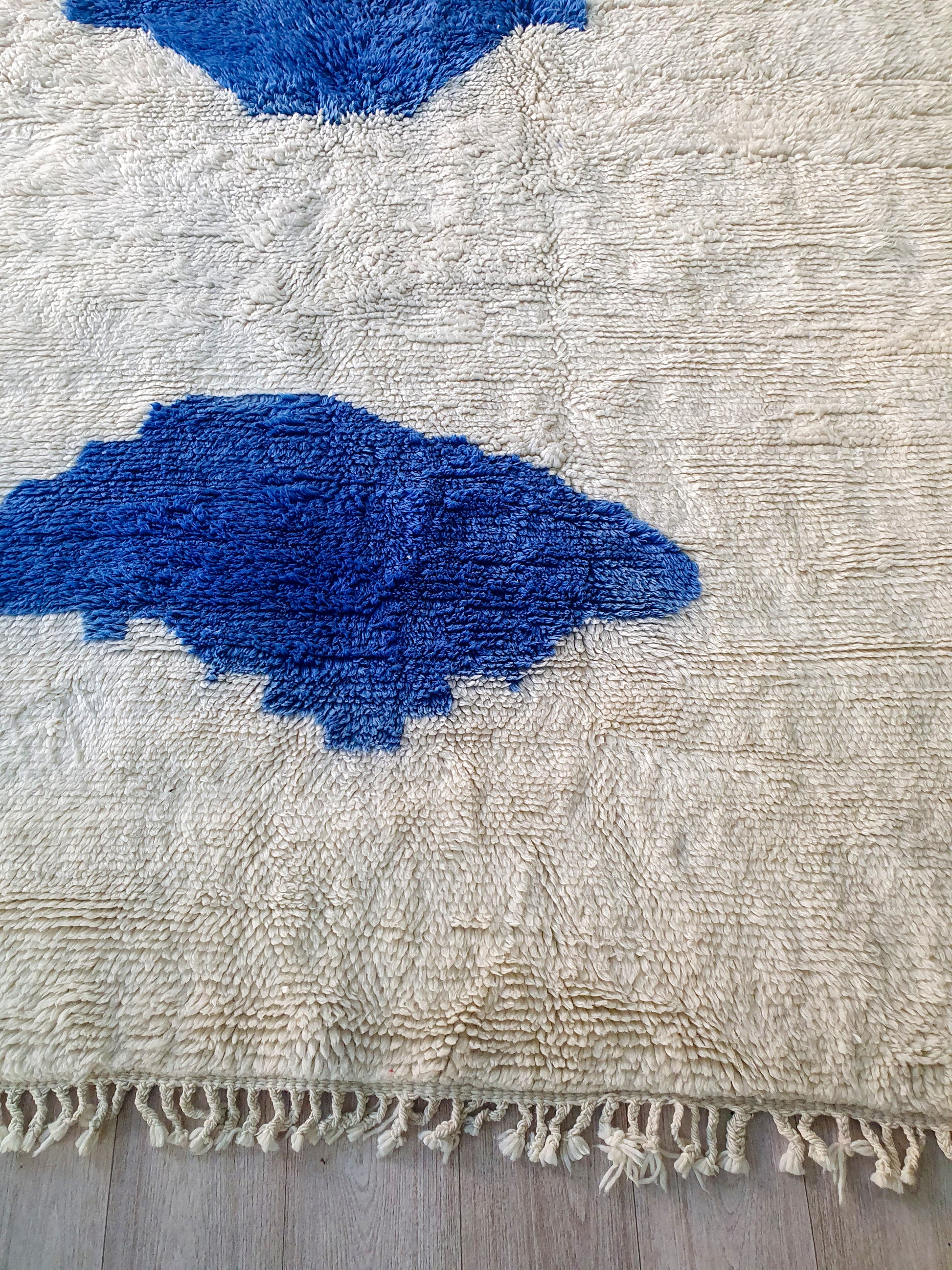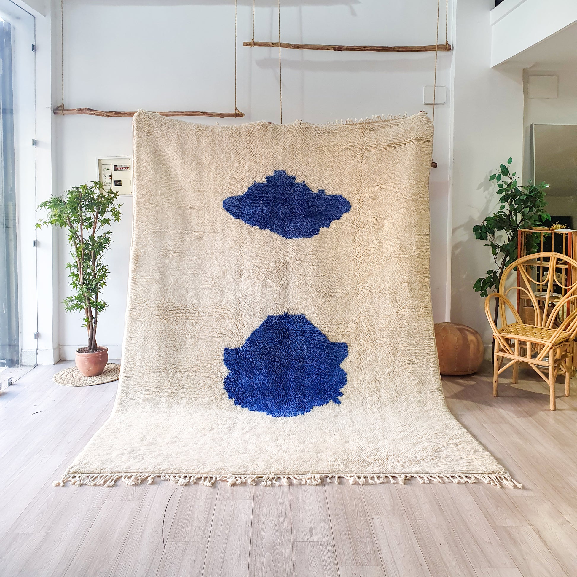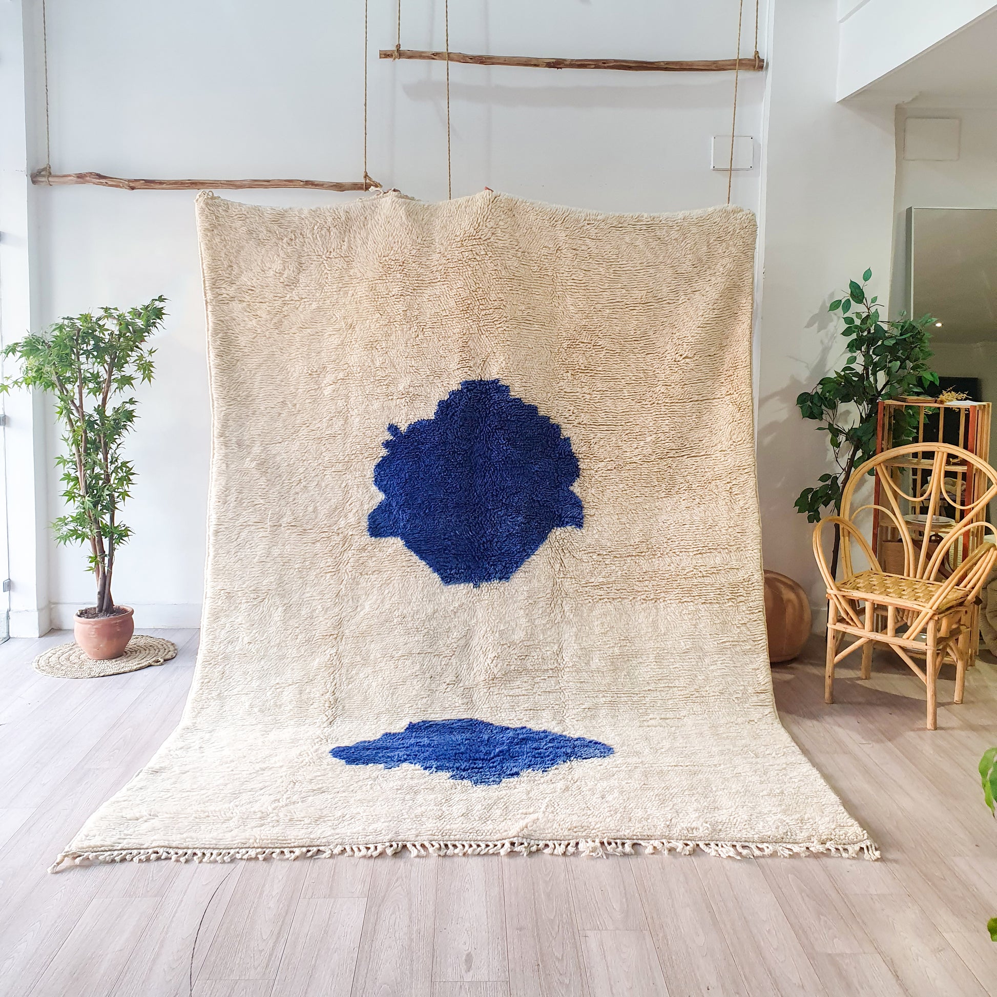 Veuillez noter que ces tapis sont entièrement tissés à la main par des femmes, donc toute imperfection mineure ne fait qu'ajouter à la beauté du tapis et à son caractère unique.
