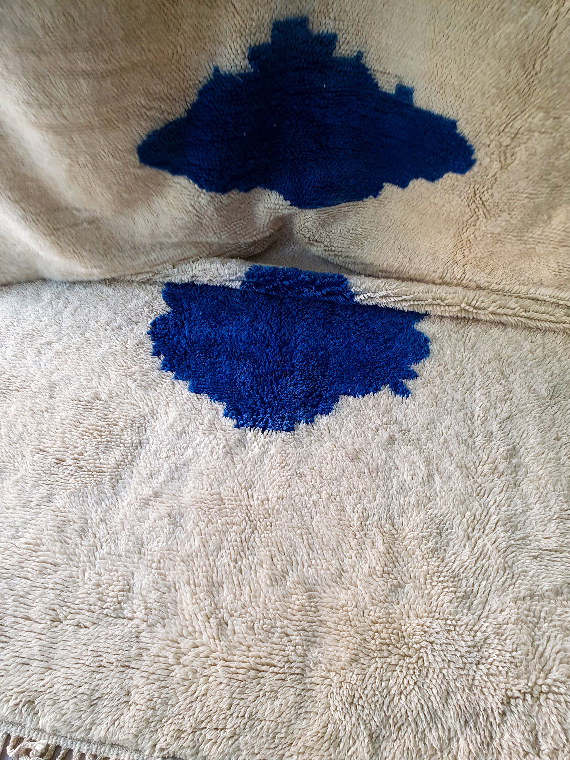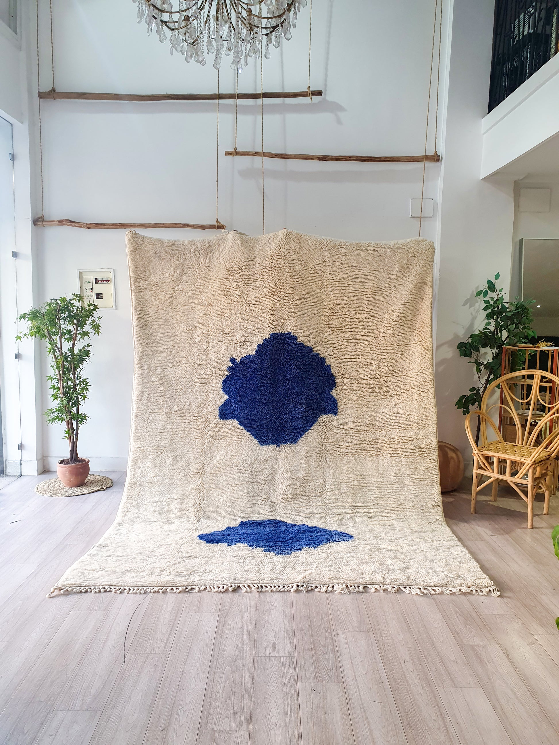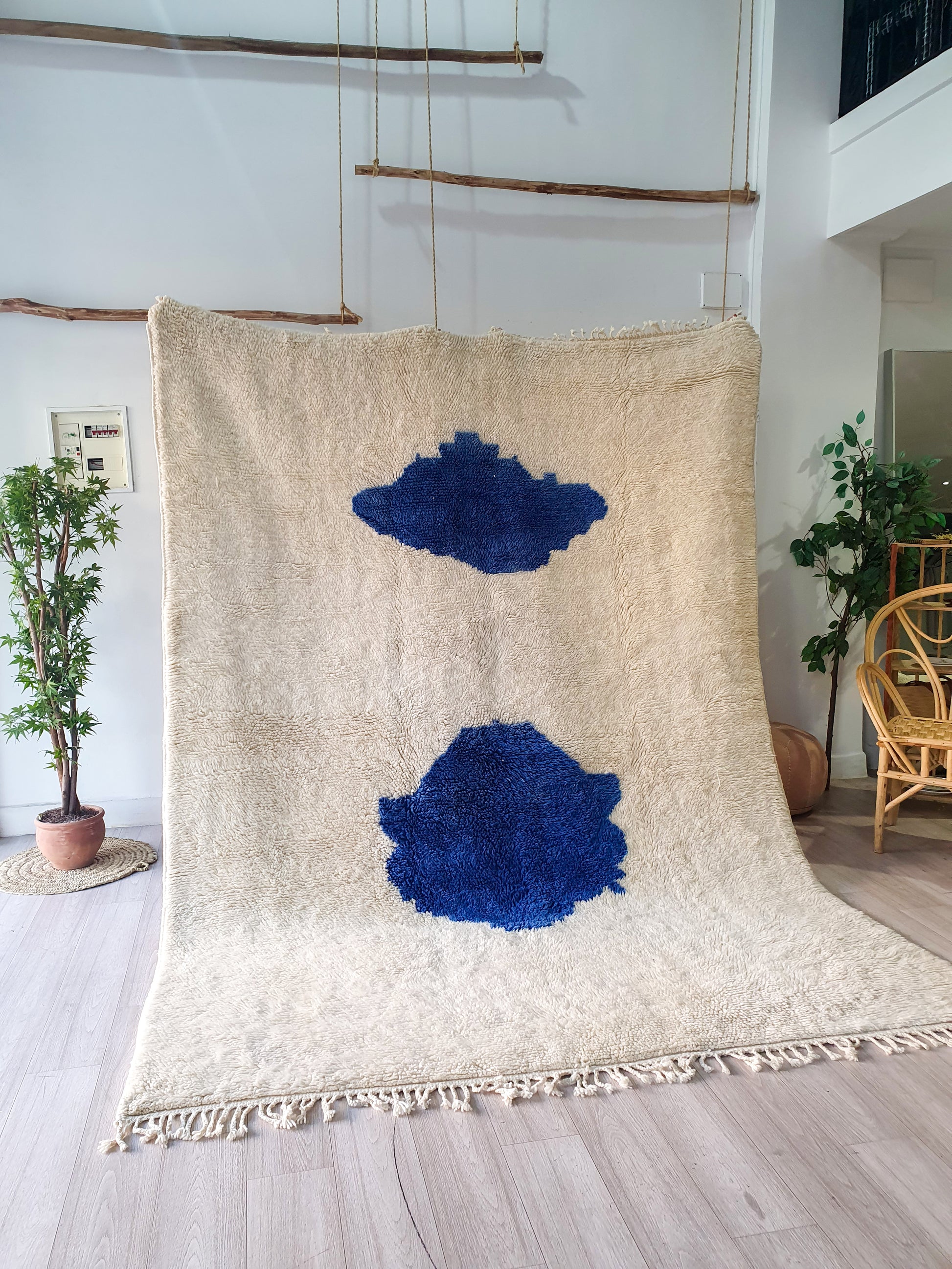 Veuillez noter que ces tapis sont entièrement tissés à la main par des femmes, donc toute imperfection mineure ne fait qu'ajouter à la beauté du tapis et à son caractère unique.