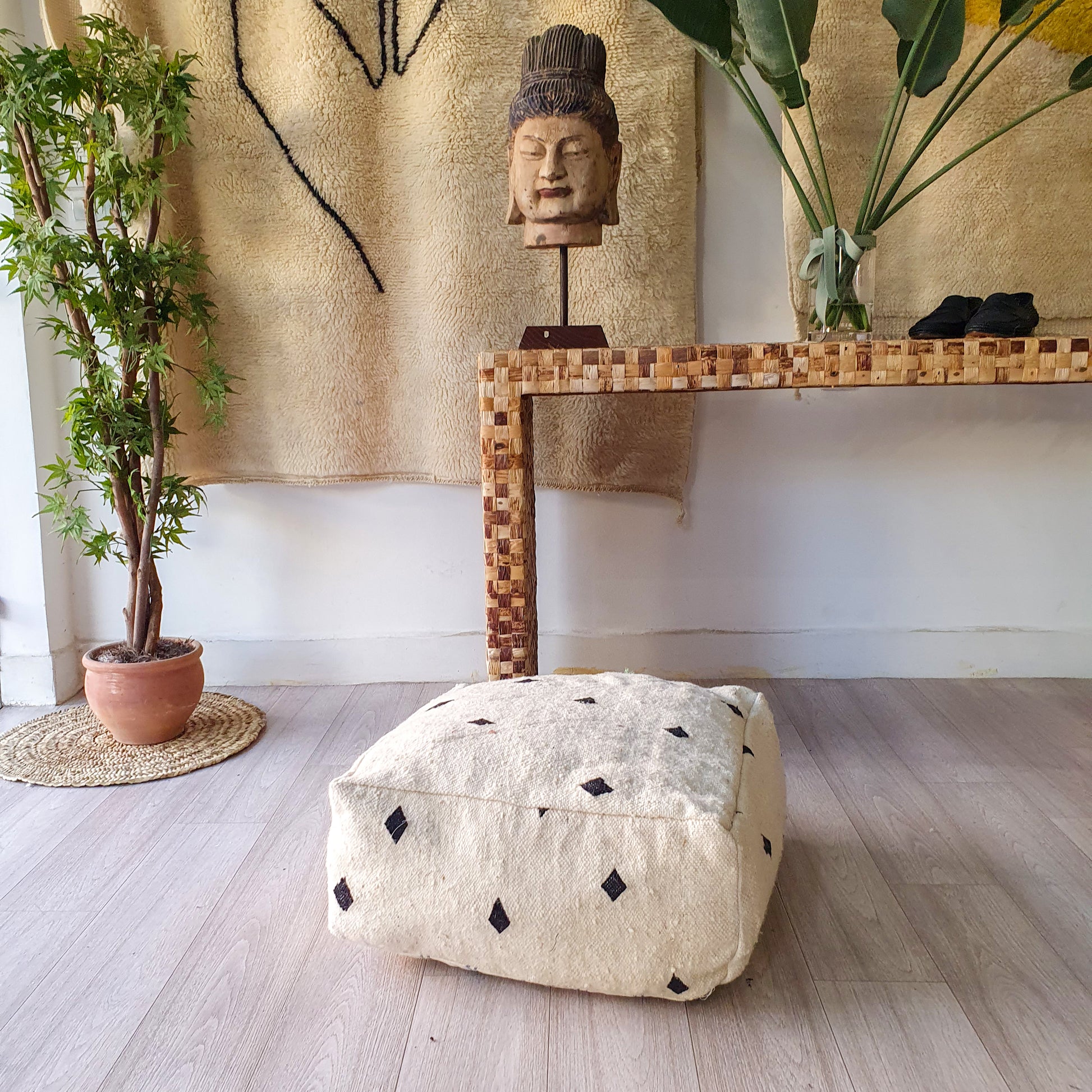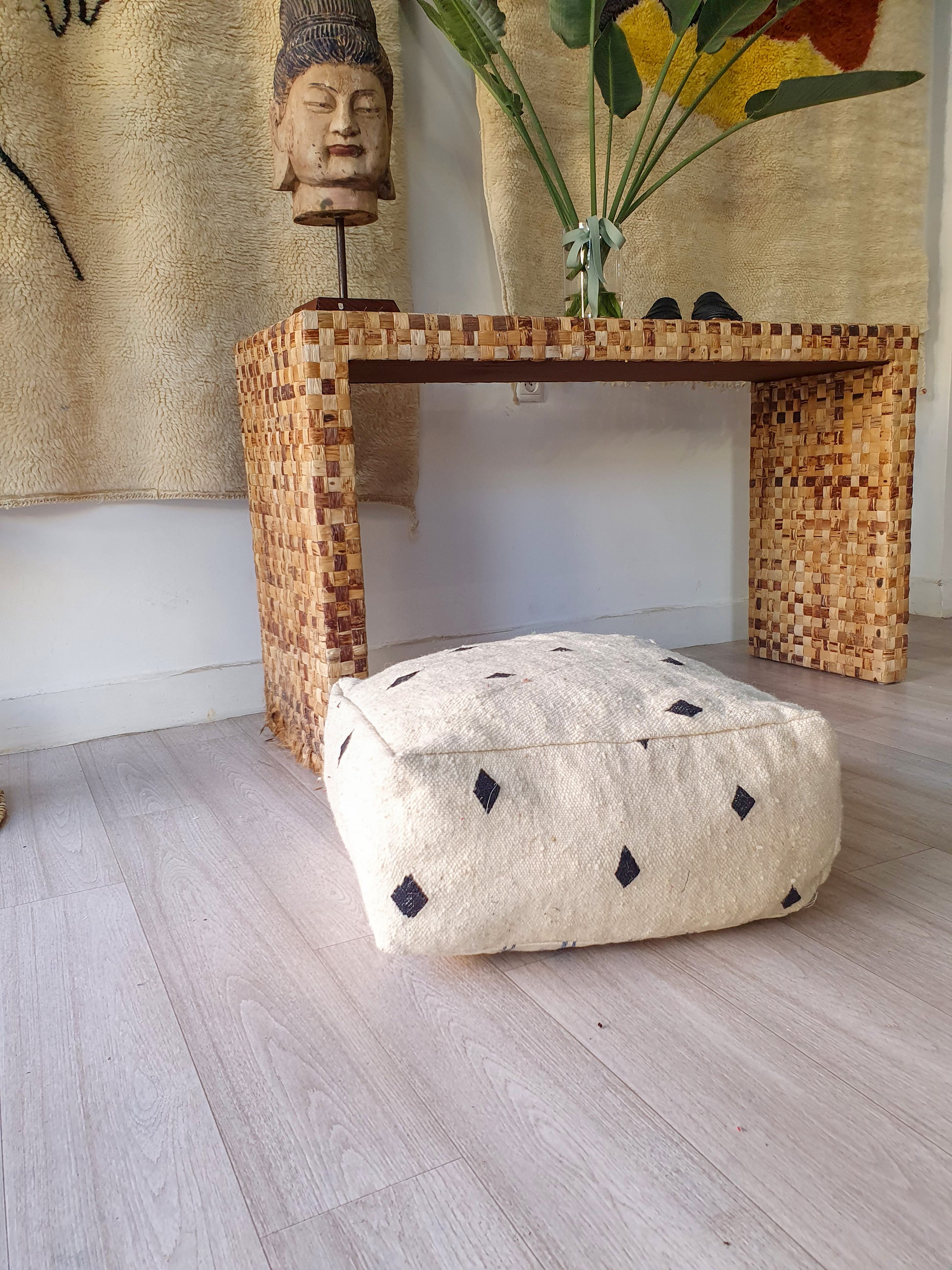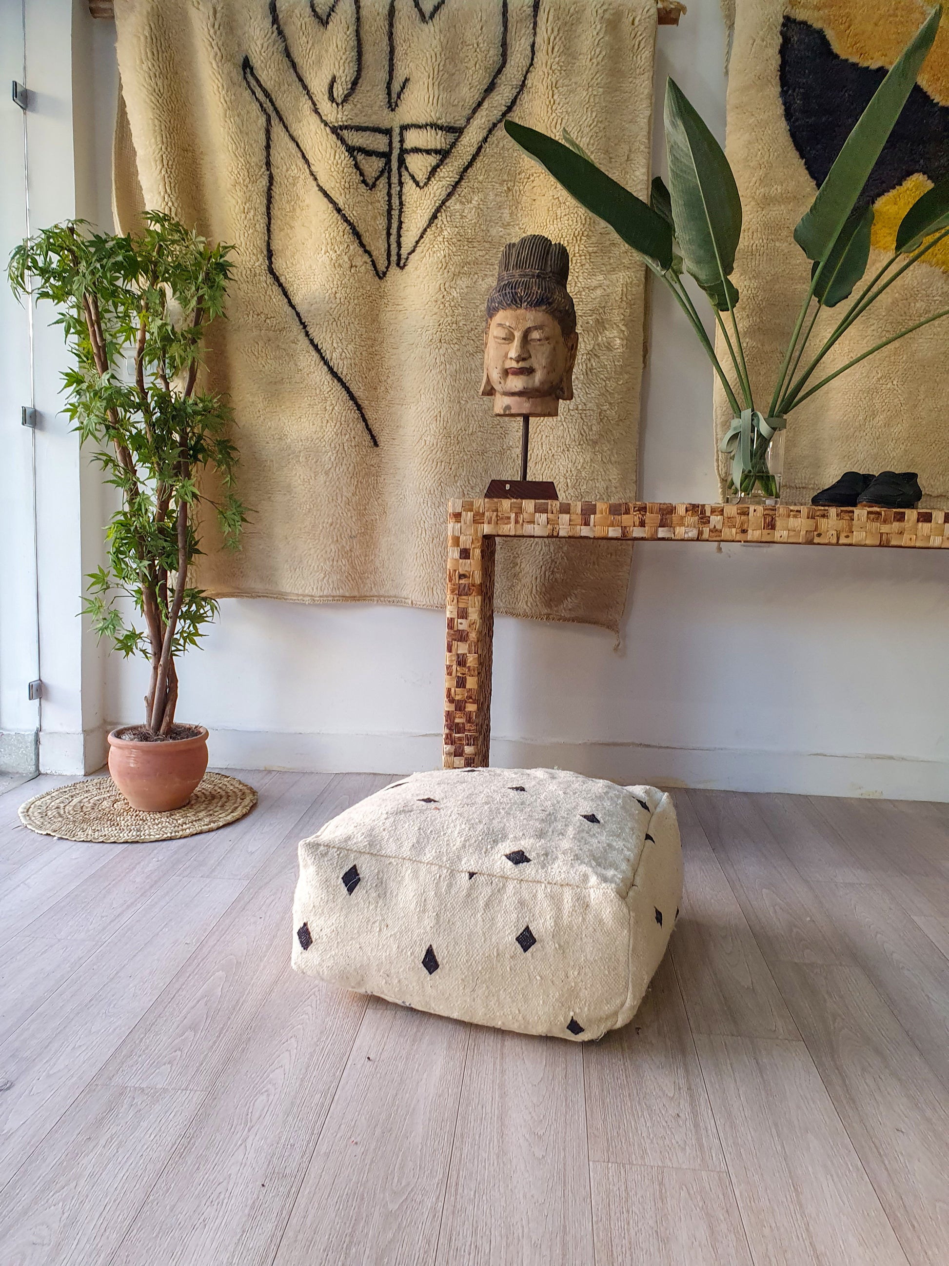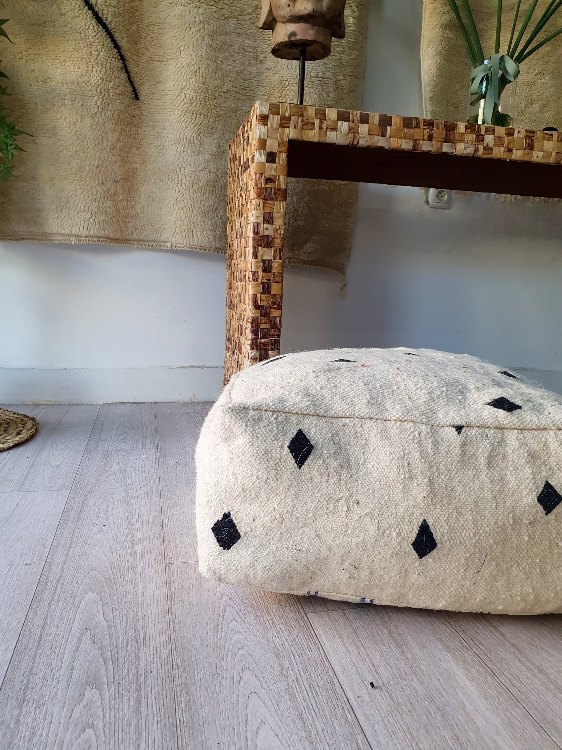 Celui-ci d’un genre pouf marocain. Il est fabriqué à la main par des femmes berbères à partir de kilim vintage, Beni ourain, Azilal et d'autres types de tapis faits à la main. Chaque pouf est unique et chacun a une histoire.