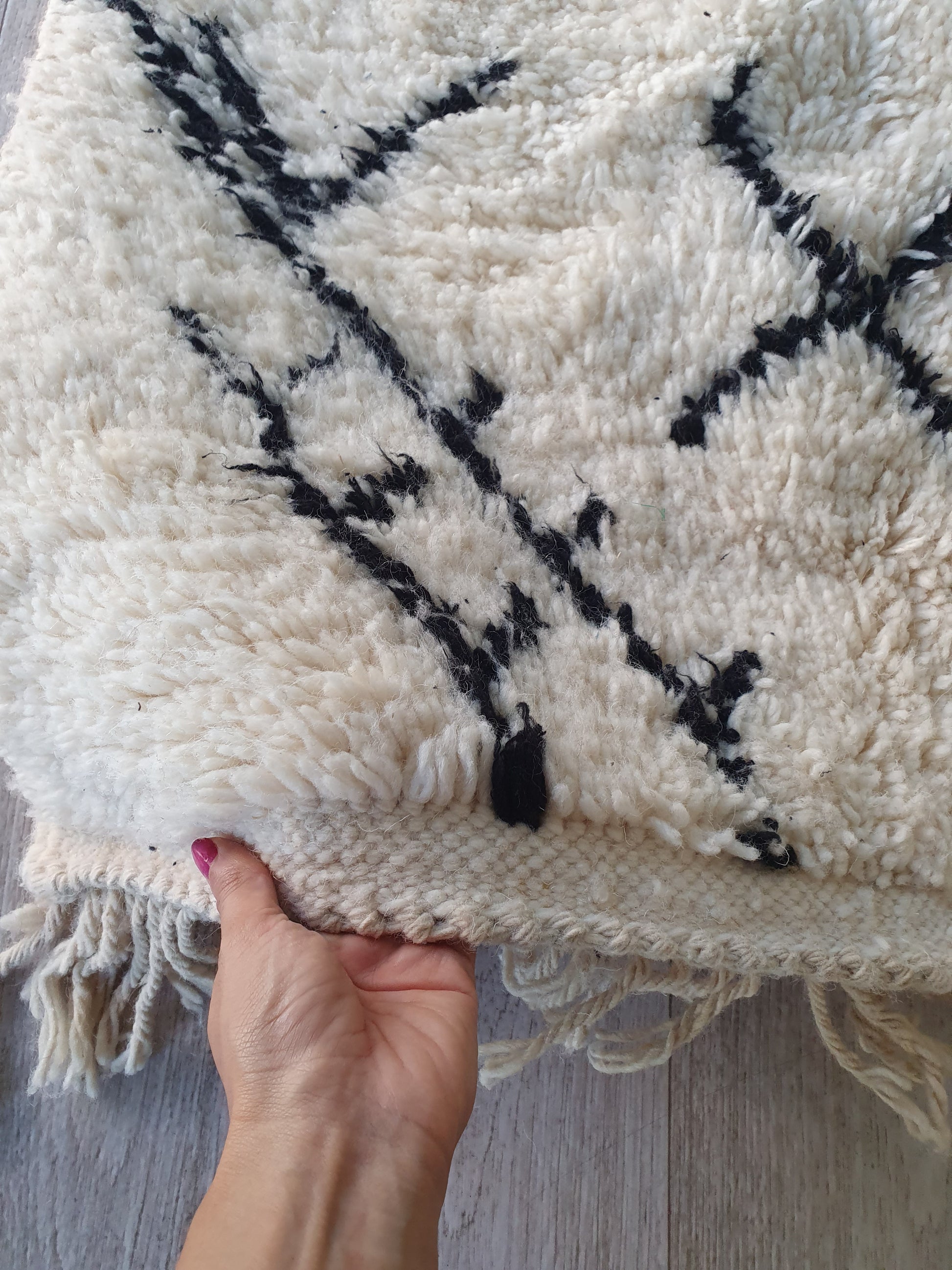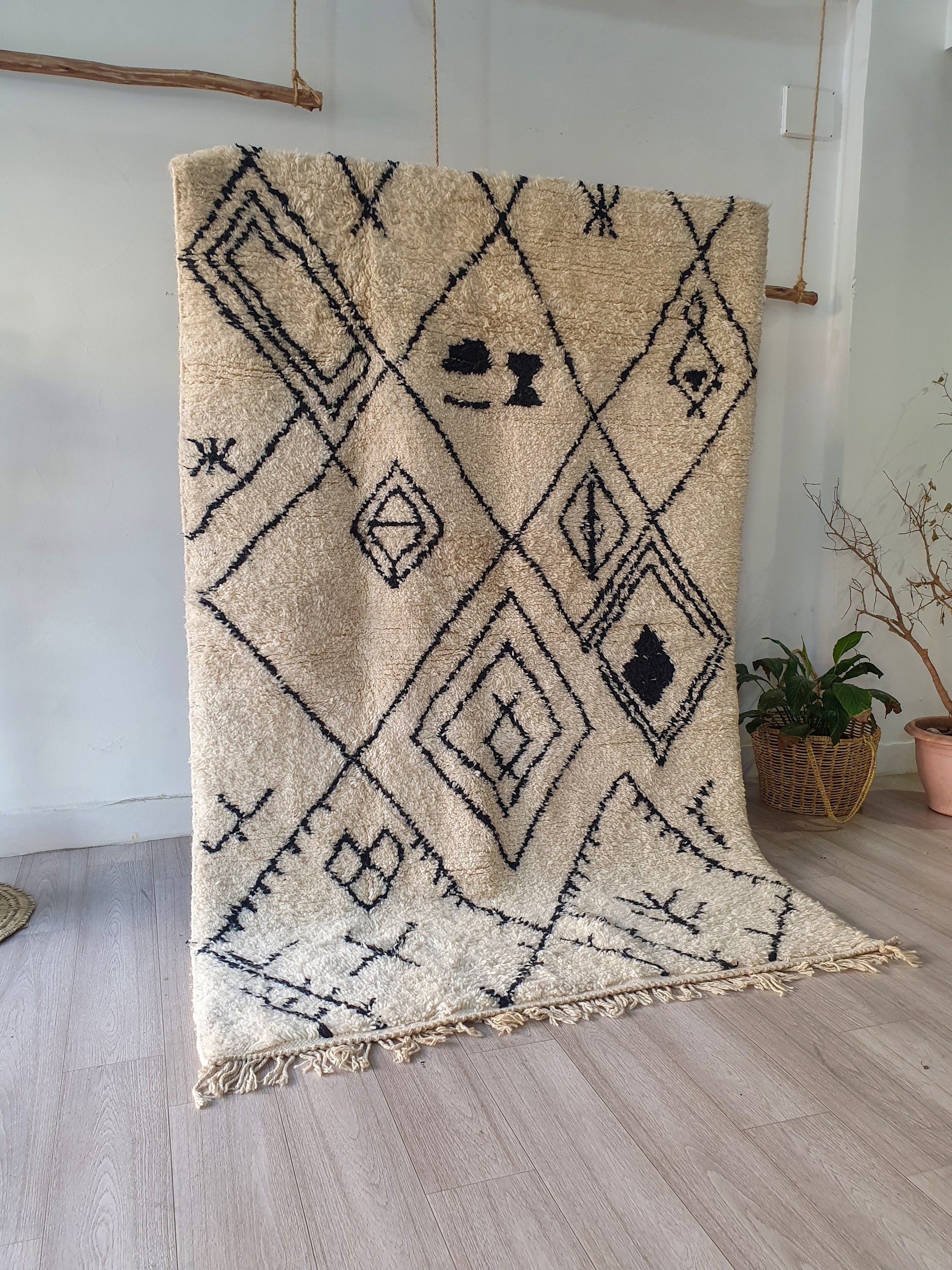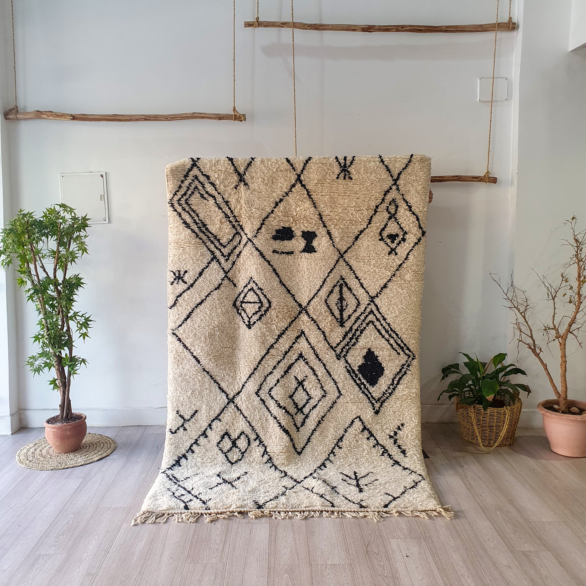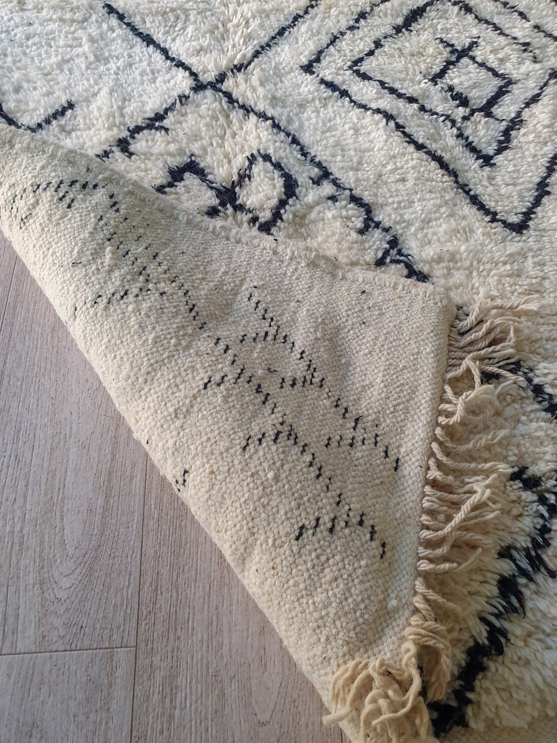 Veuillez noter que ces tapis sont entièrement tissés à la main par des femmes, donc toute imperfection mineure ne fait qu'ajouter à la beauté du tapis et à son caractère unique.