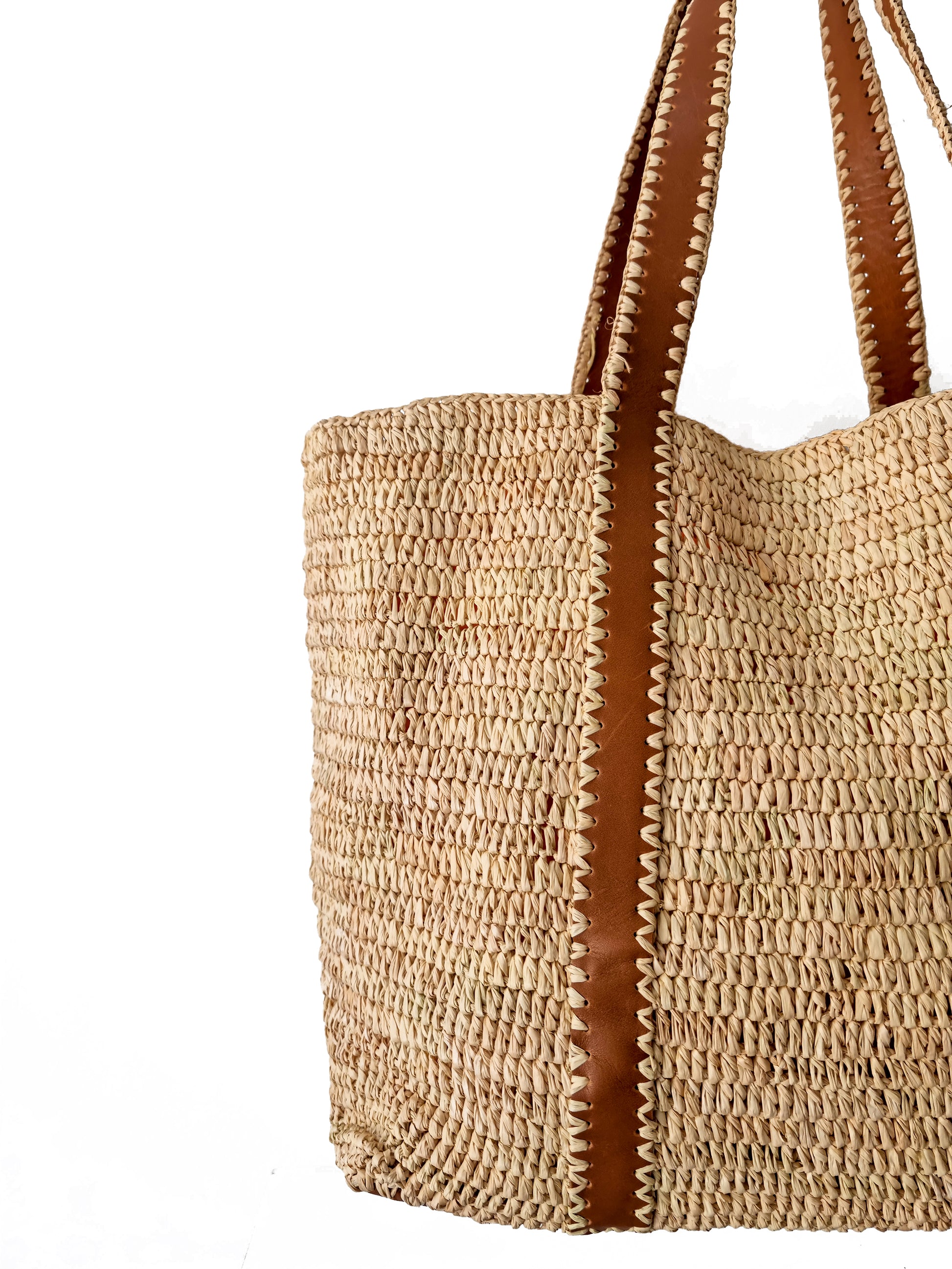 This is a timeless raffia tote bag. Very light and has enough space to carry all you need and much more. Ethically handmade in Morocco by women artisans who has been weaving raffia for generations.