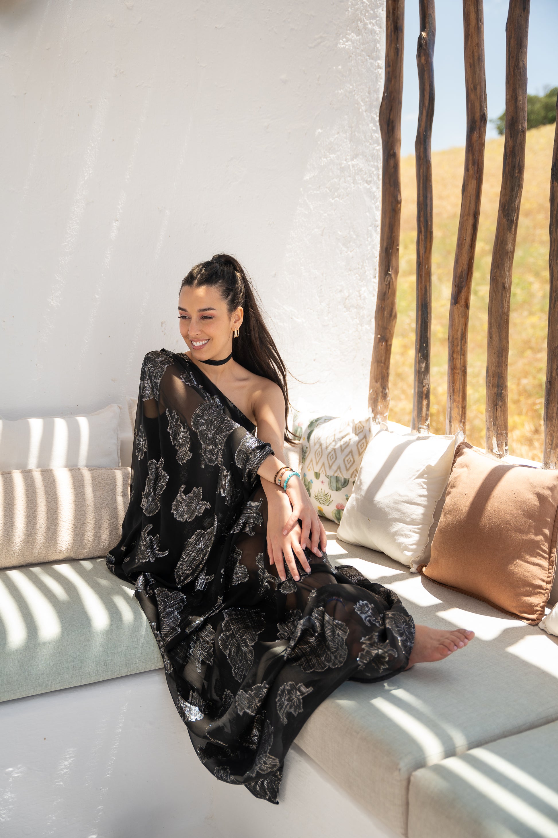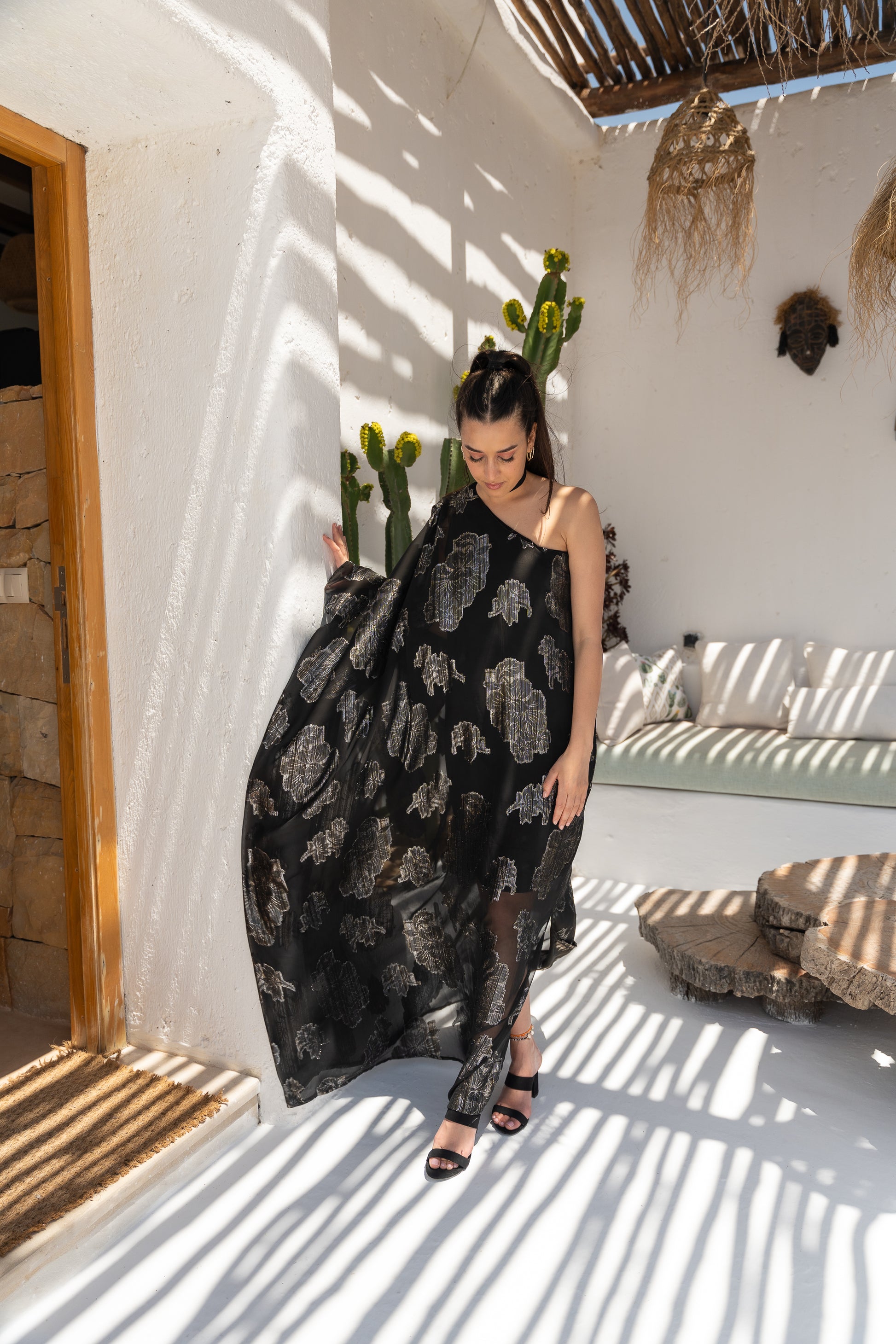 This stunning one-shoulder dress, handcrafted from the iconic Moroccan Tlija fabric, features a flattering cut for all body types. Perfect for weddings, receptions, and special occasions, it’s designed to make an elegant statement.