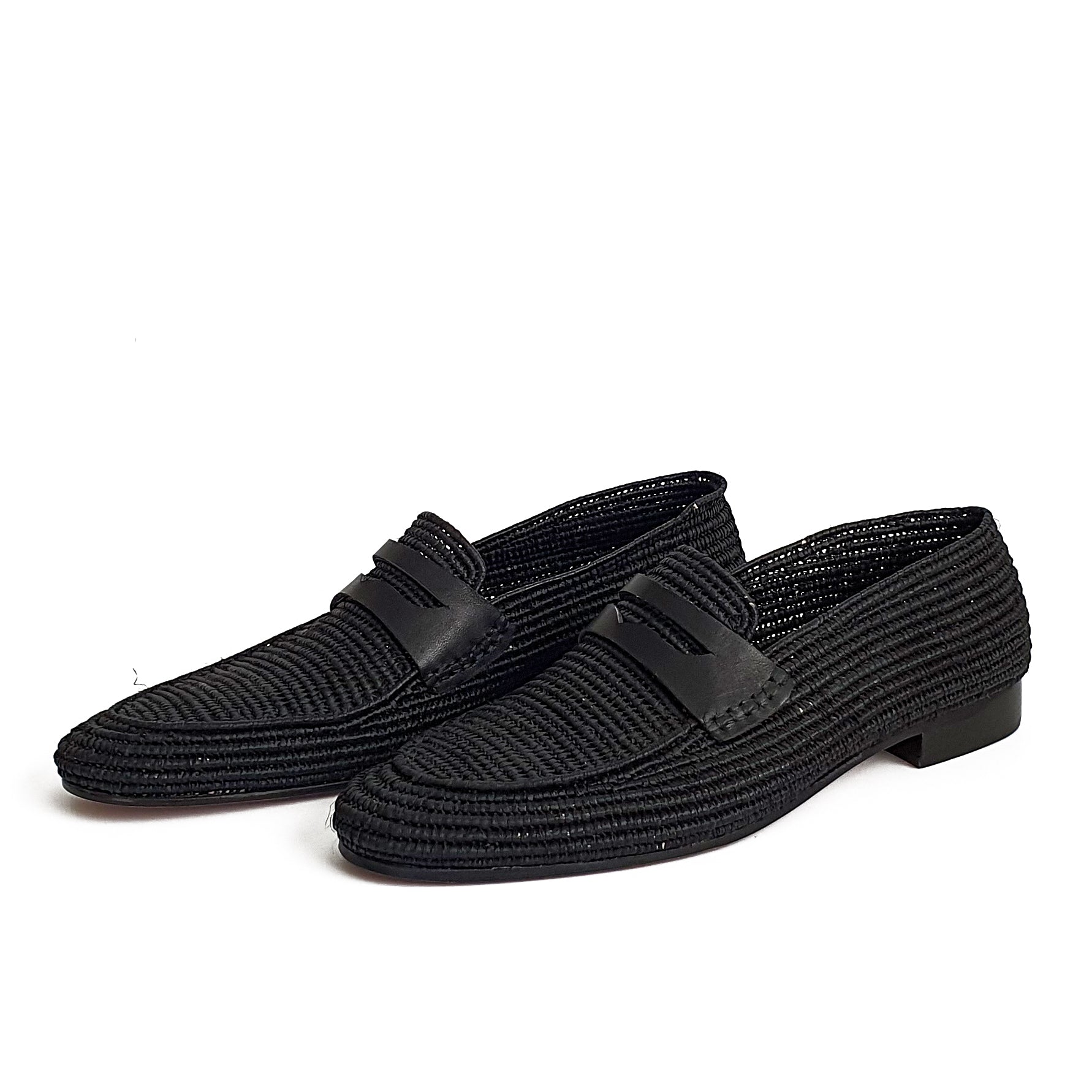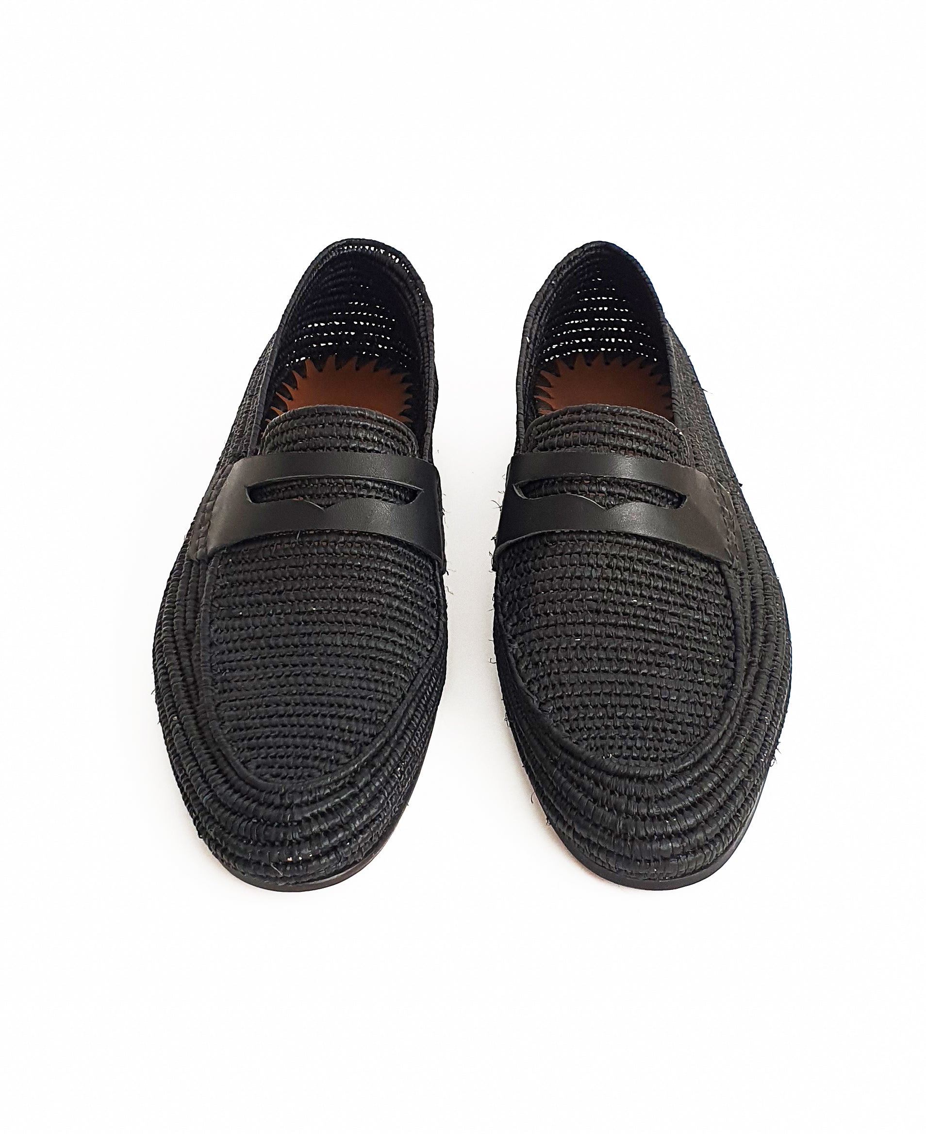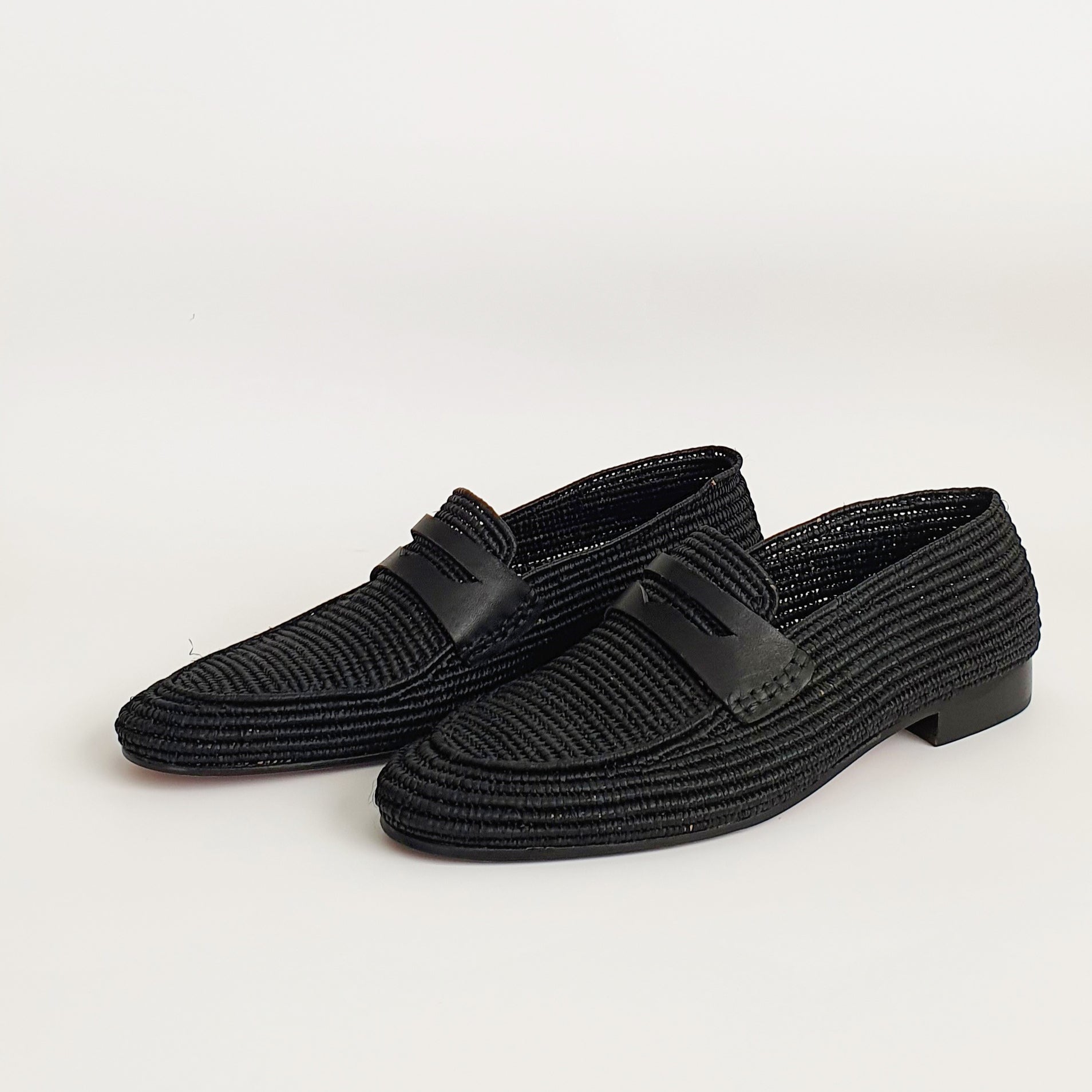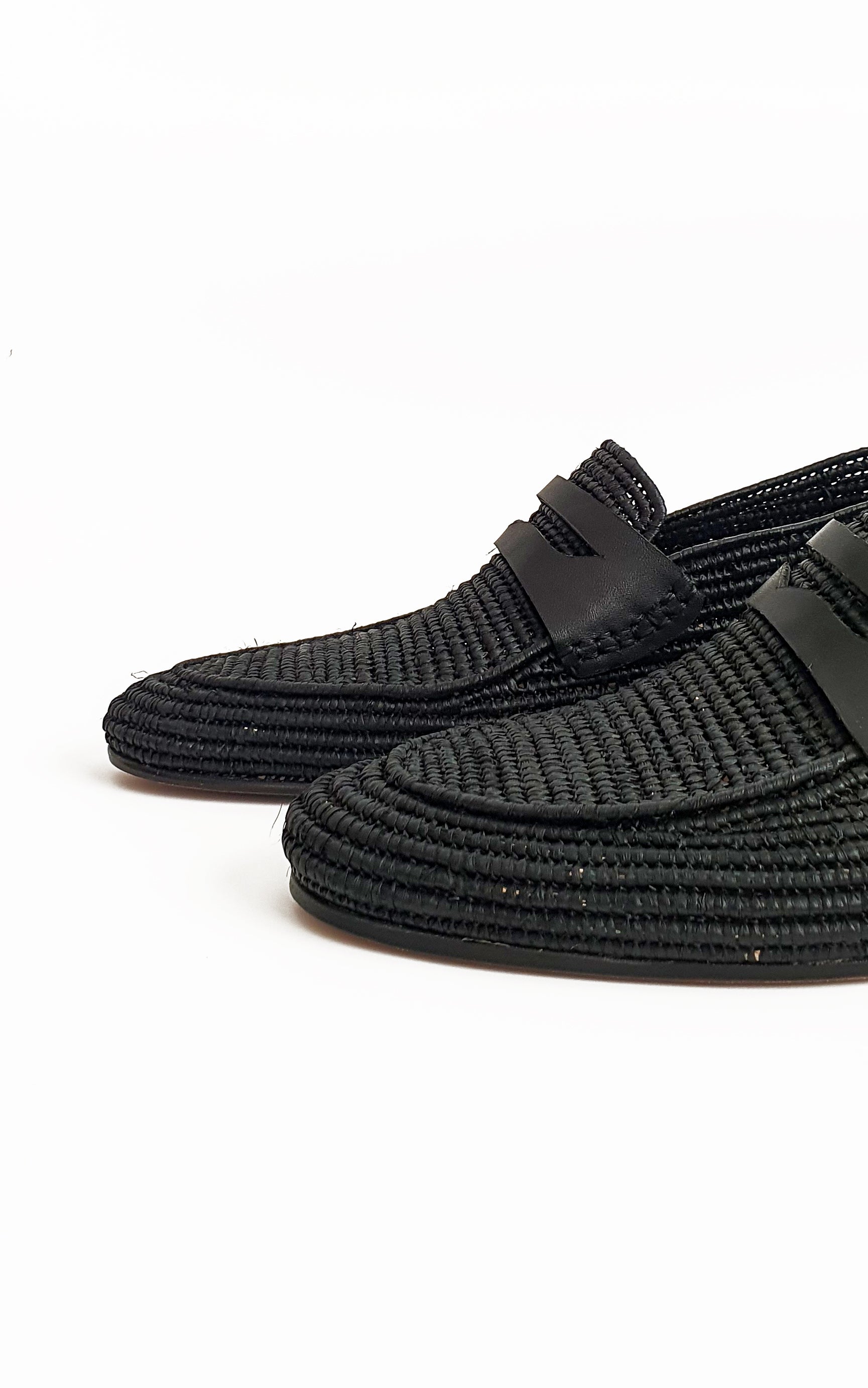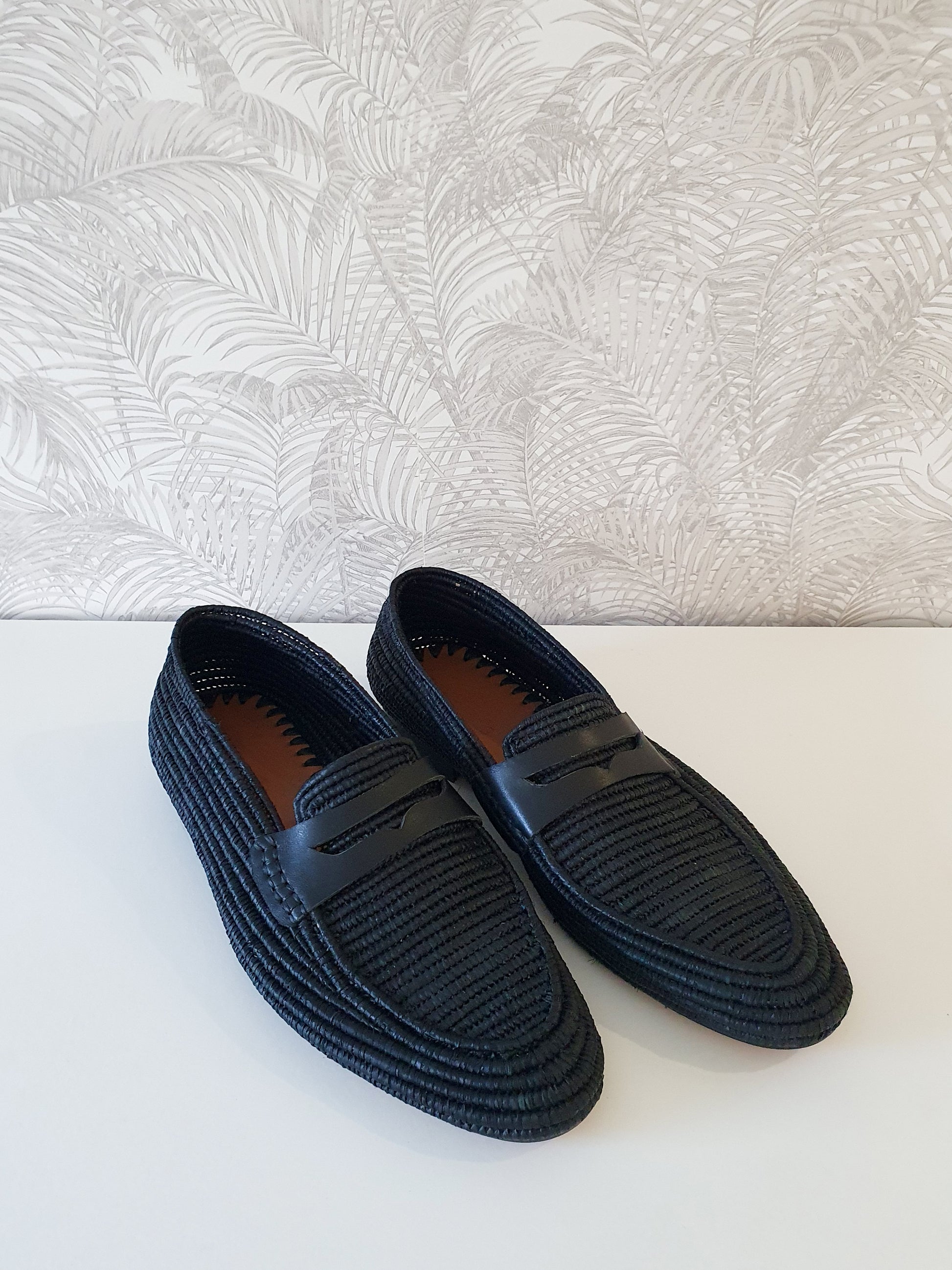 The upper part is handmade from palm leaves also known as raffia. It is fully handmade where the raffia is weaved by women and then the soles are assembled from high end real leather. The insoles are also made from very good quality real leather.