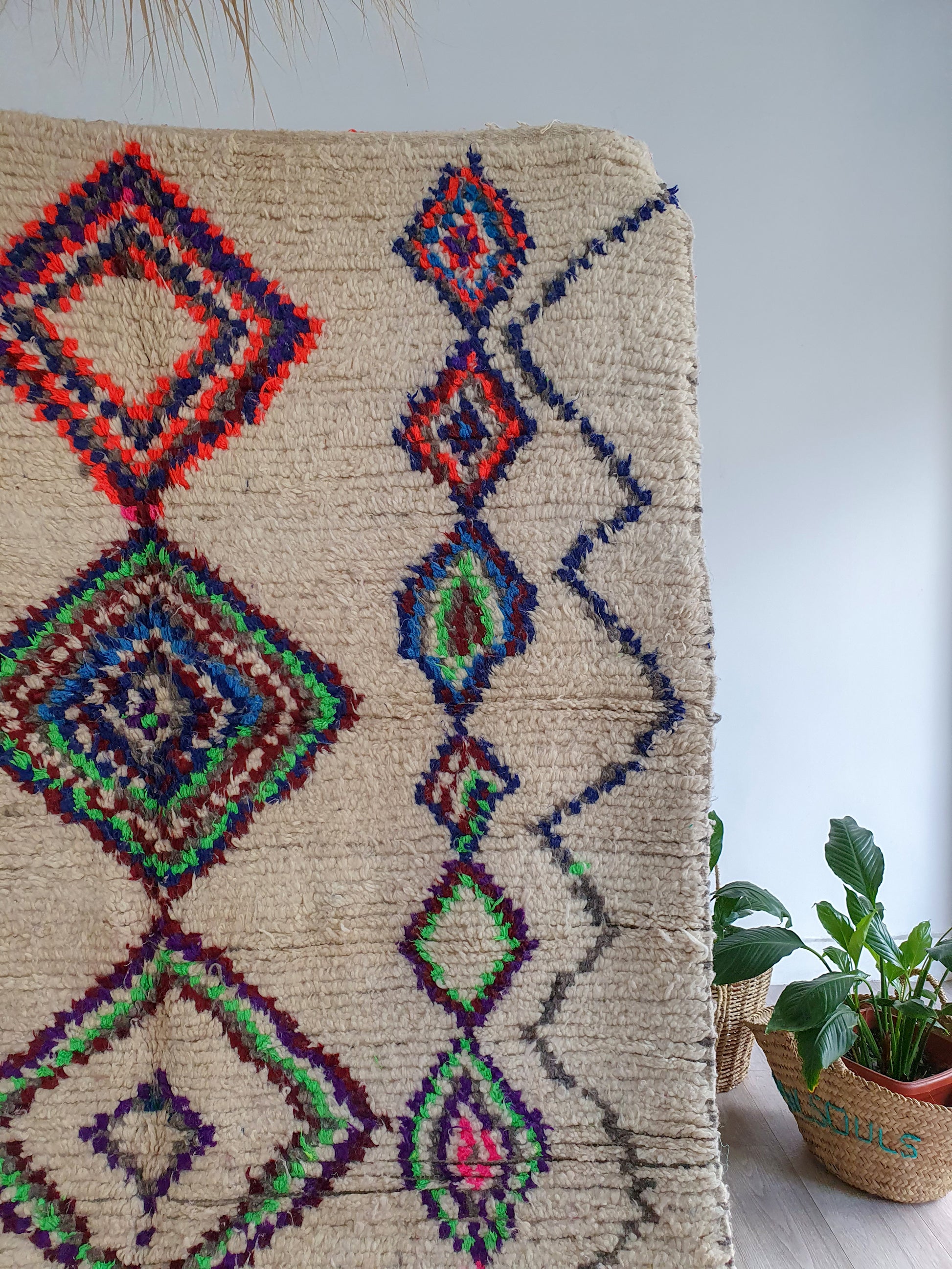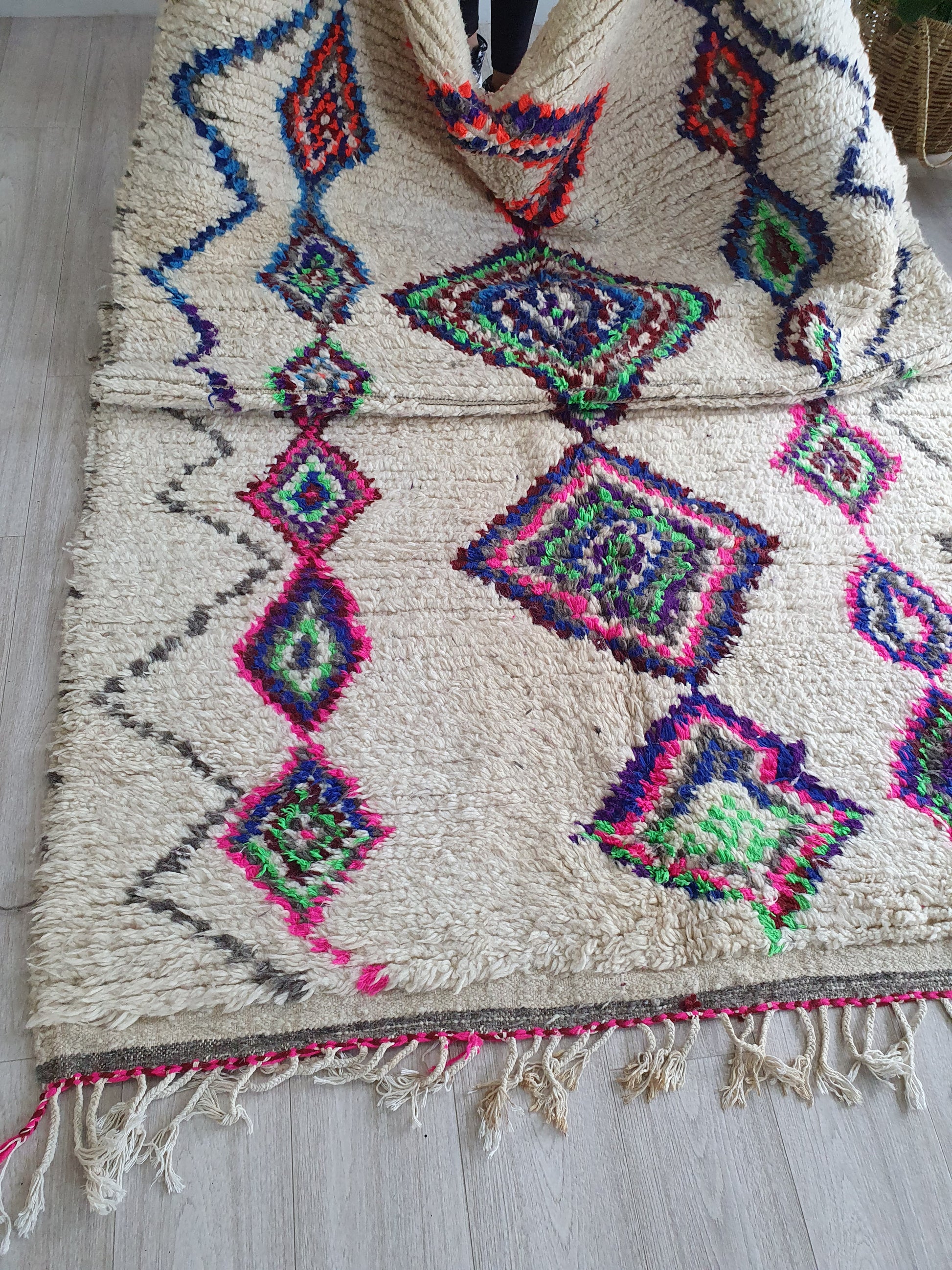 Please note these rugs are fully hand weaved by women so any minor imperfection only adds to the beauty of the rug and its uniqueness.