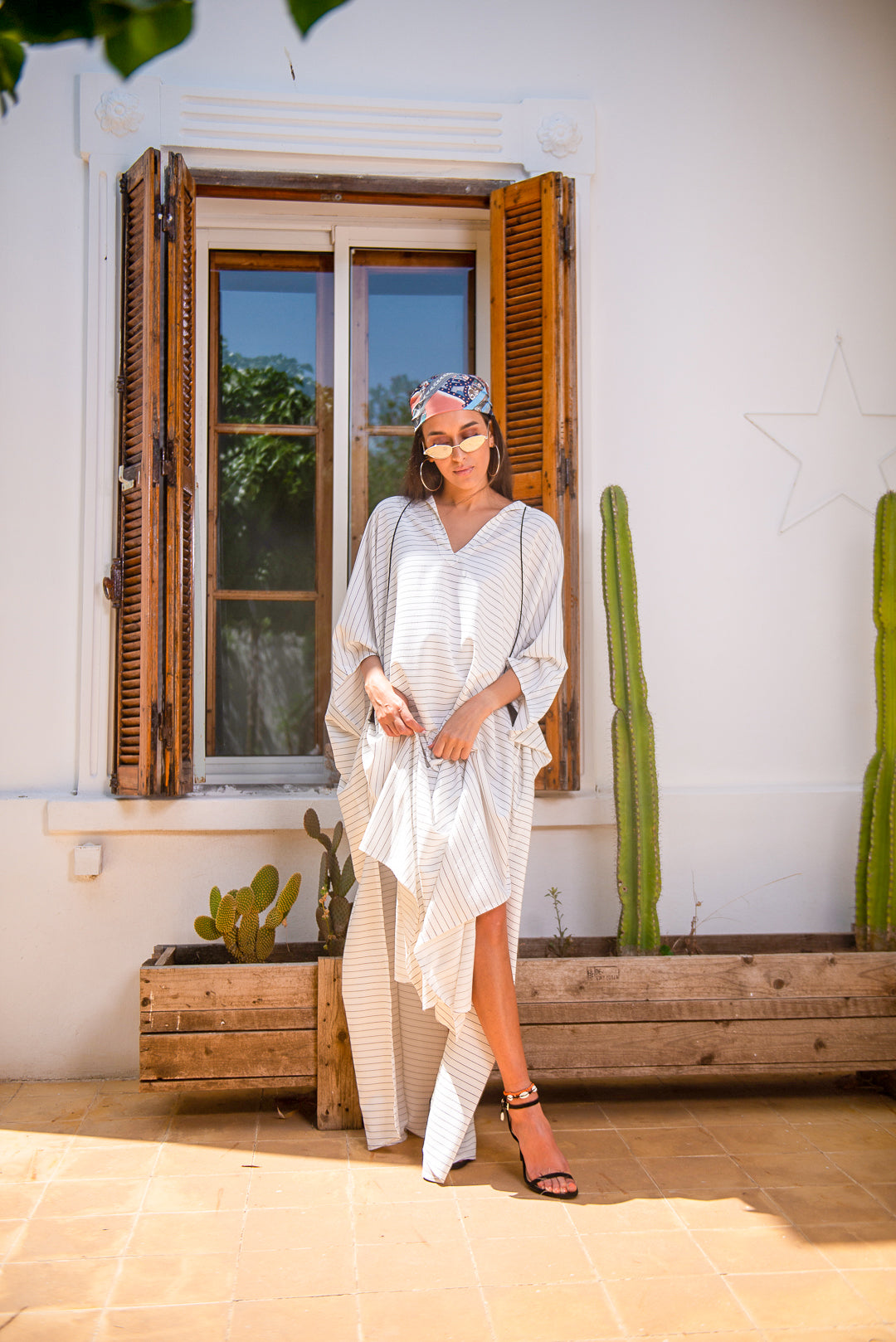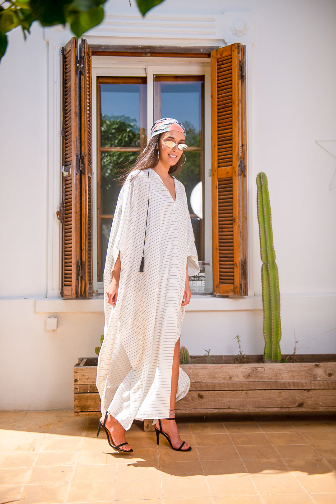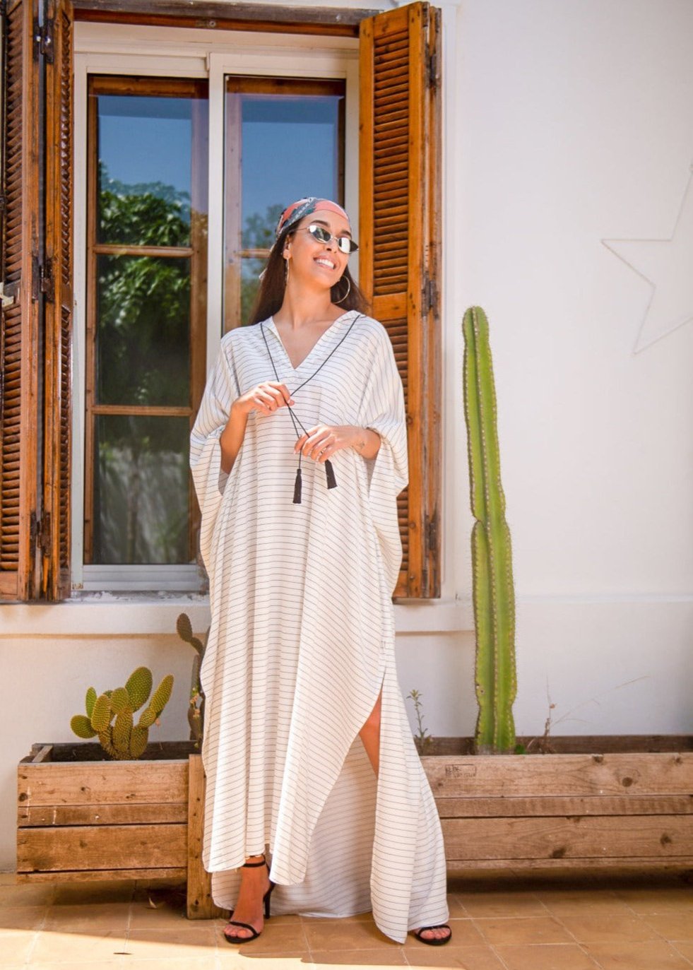 One size fits all summer caftan, designed for effortless style and comfort. Whether you’re on a vacation getaway or enjoying a day by the pool, this caftan is your go-to piece. Crafted from an ultra-light, breathable fabric, it keeps you cool and comfortable, making it perfect for those scorching summer day