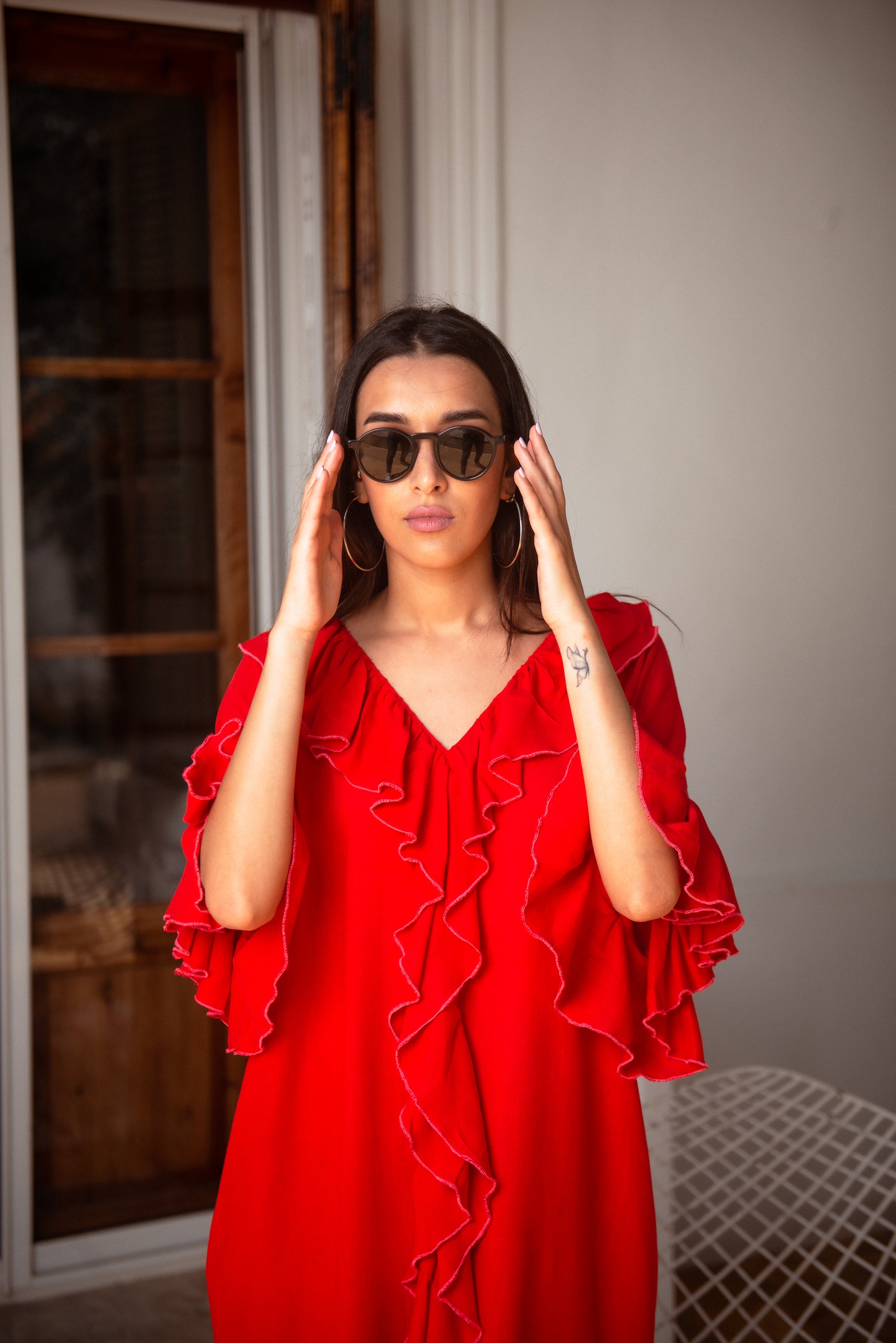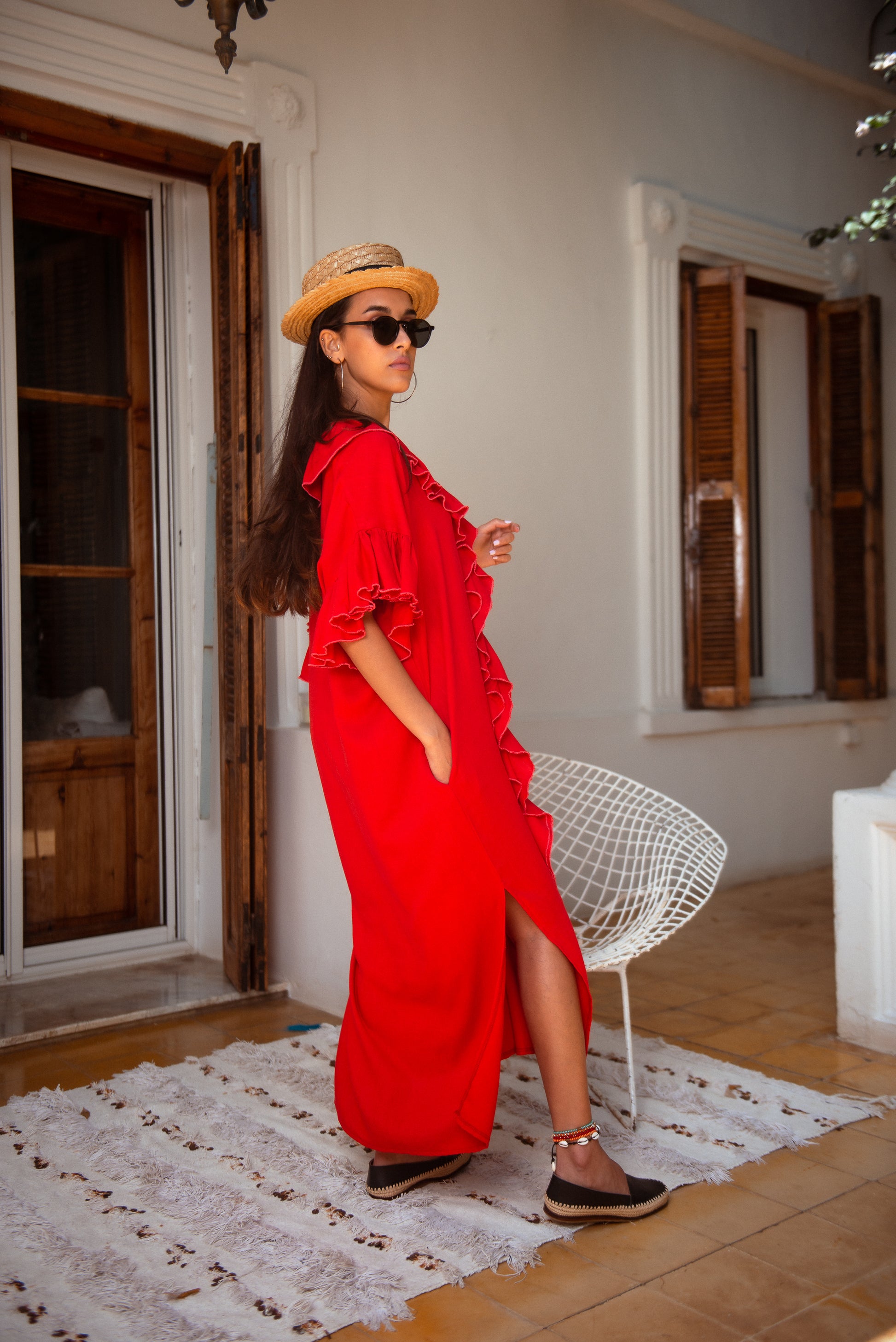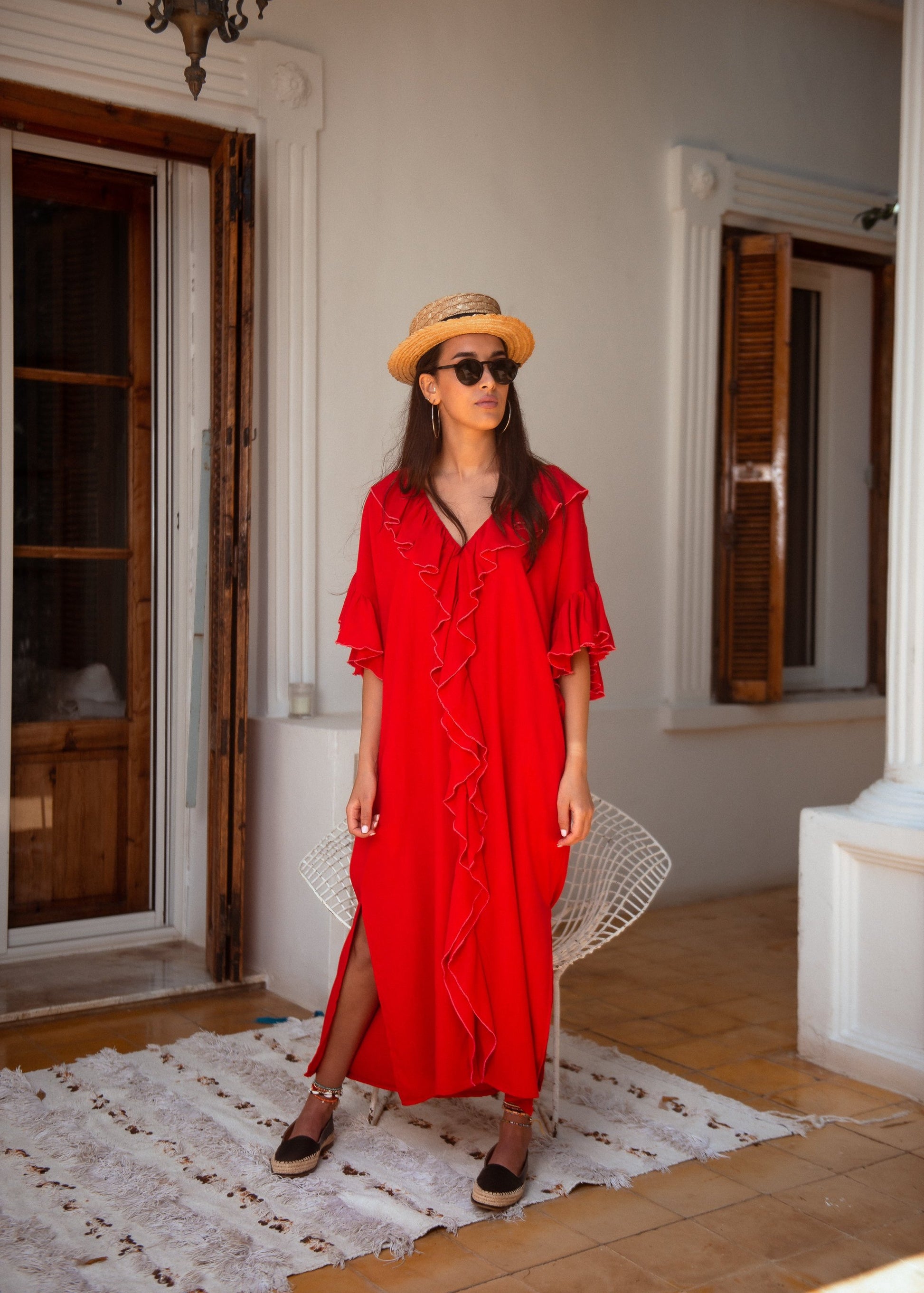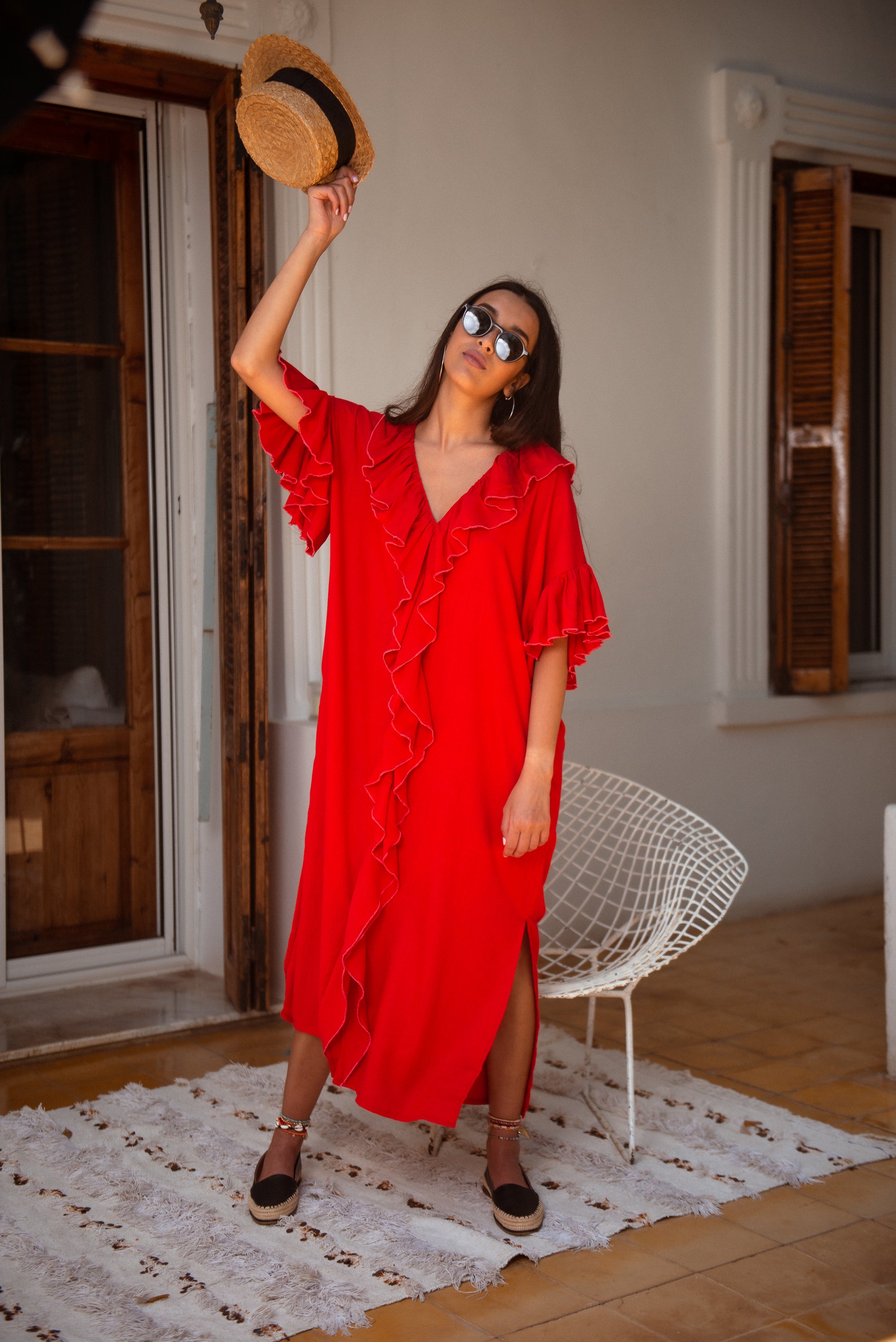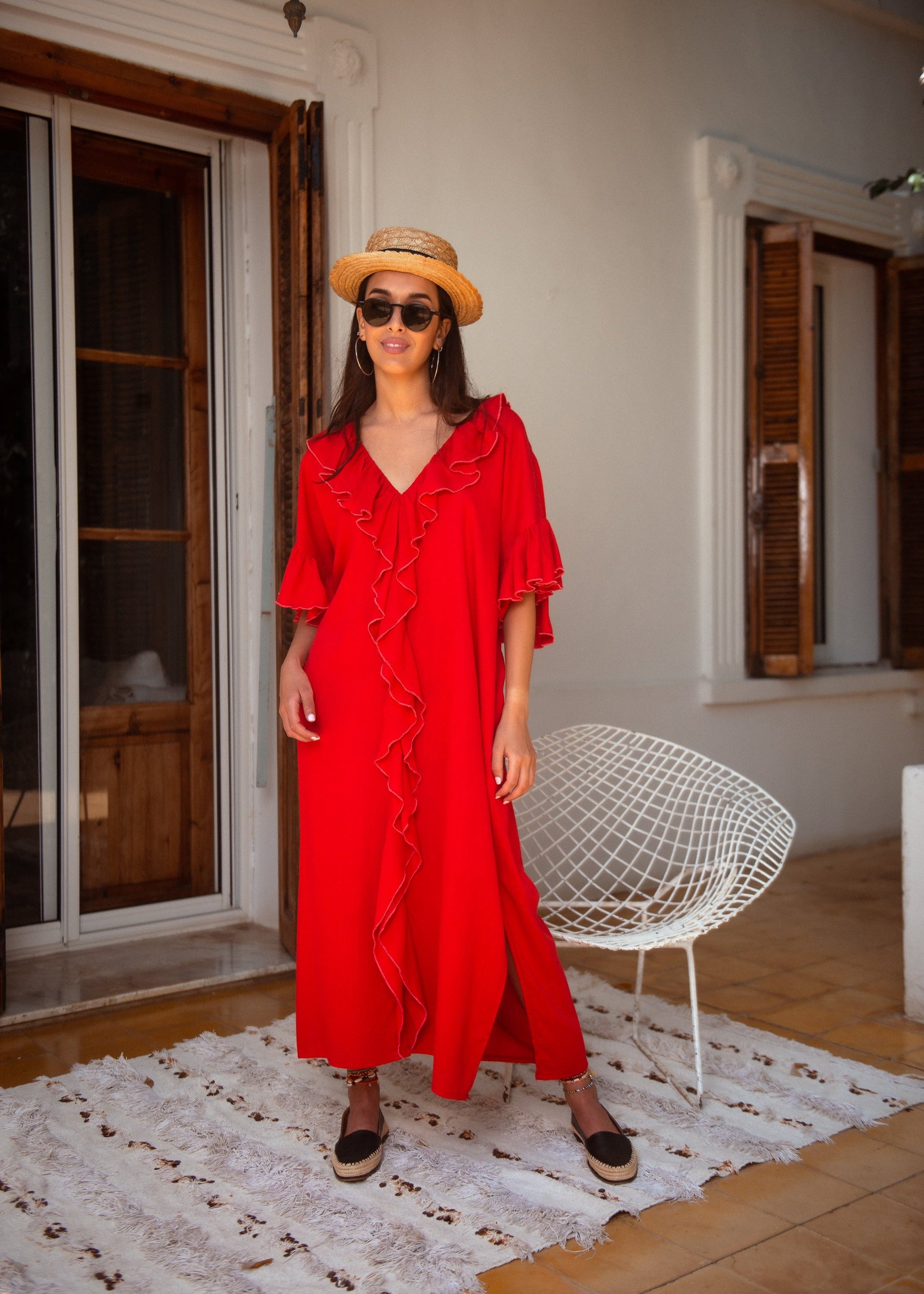It's your time to leave an impression with this gorgeous linen kaftan which features a longline silhouette, ruffle sleeves, and a flawless loose cut for the perfect fit.