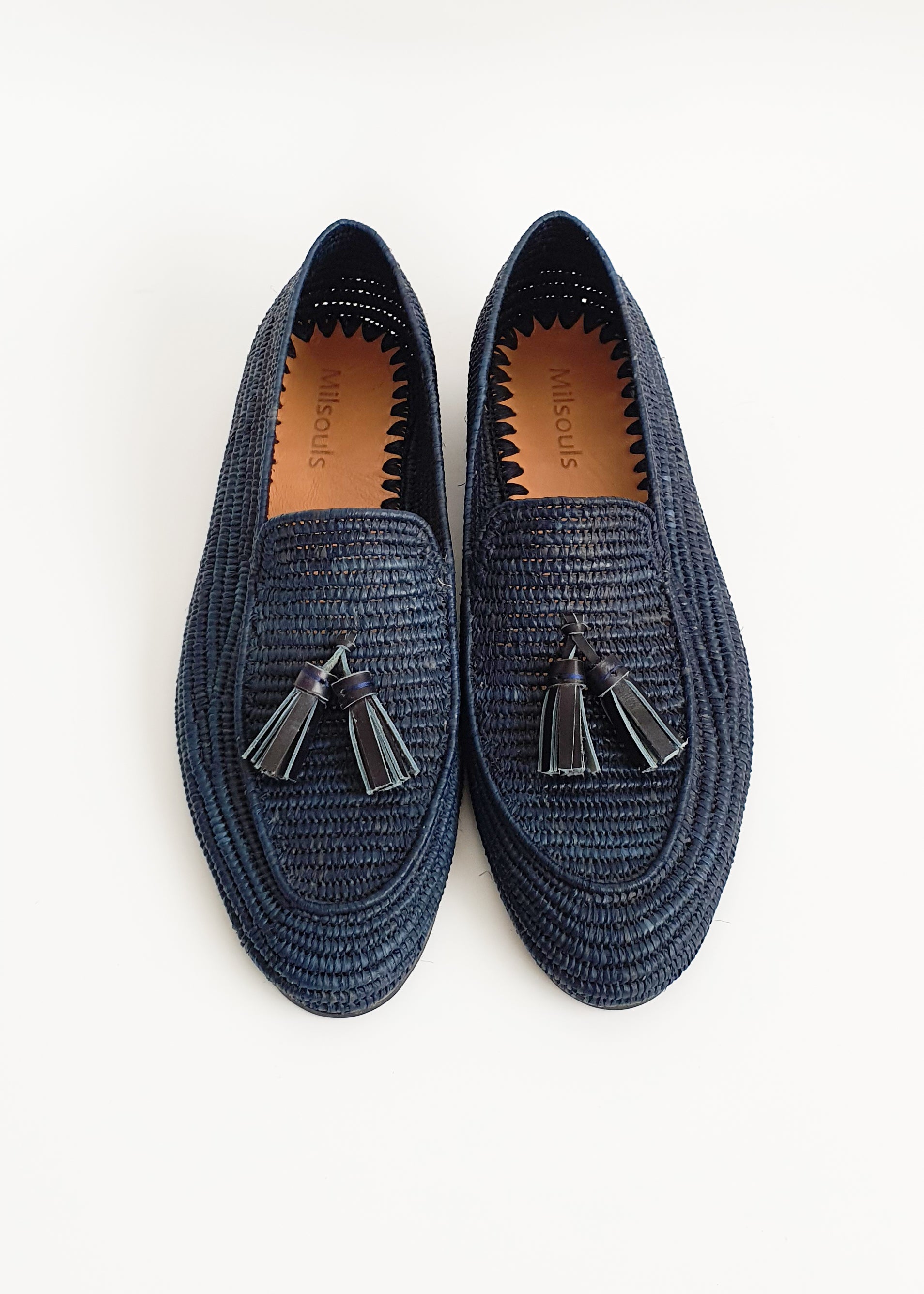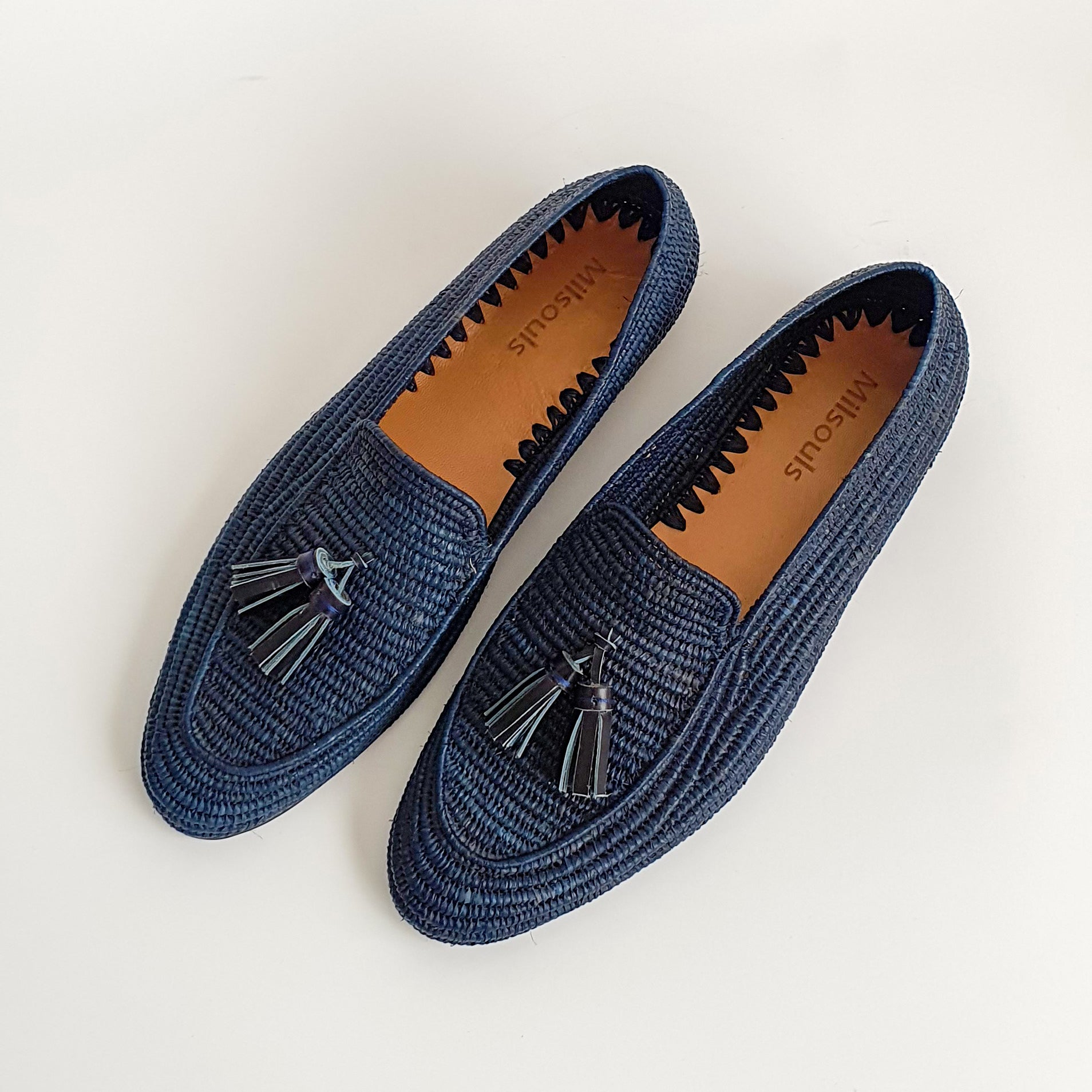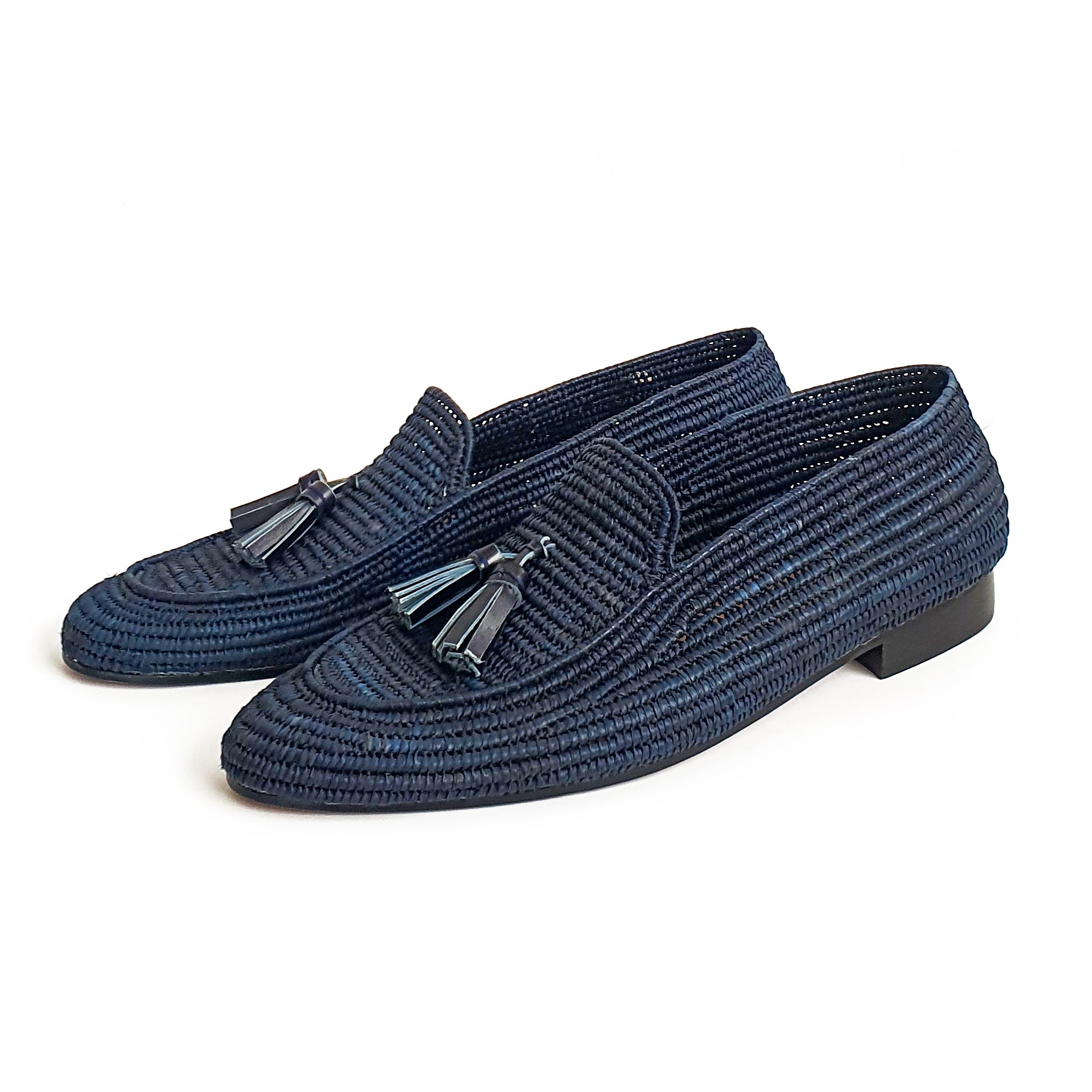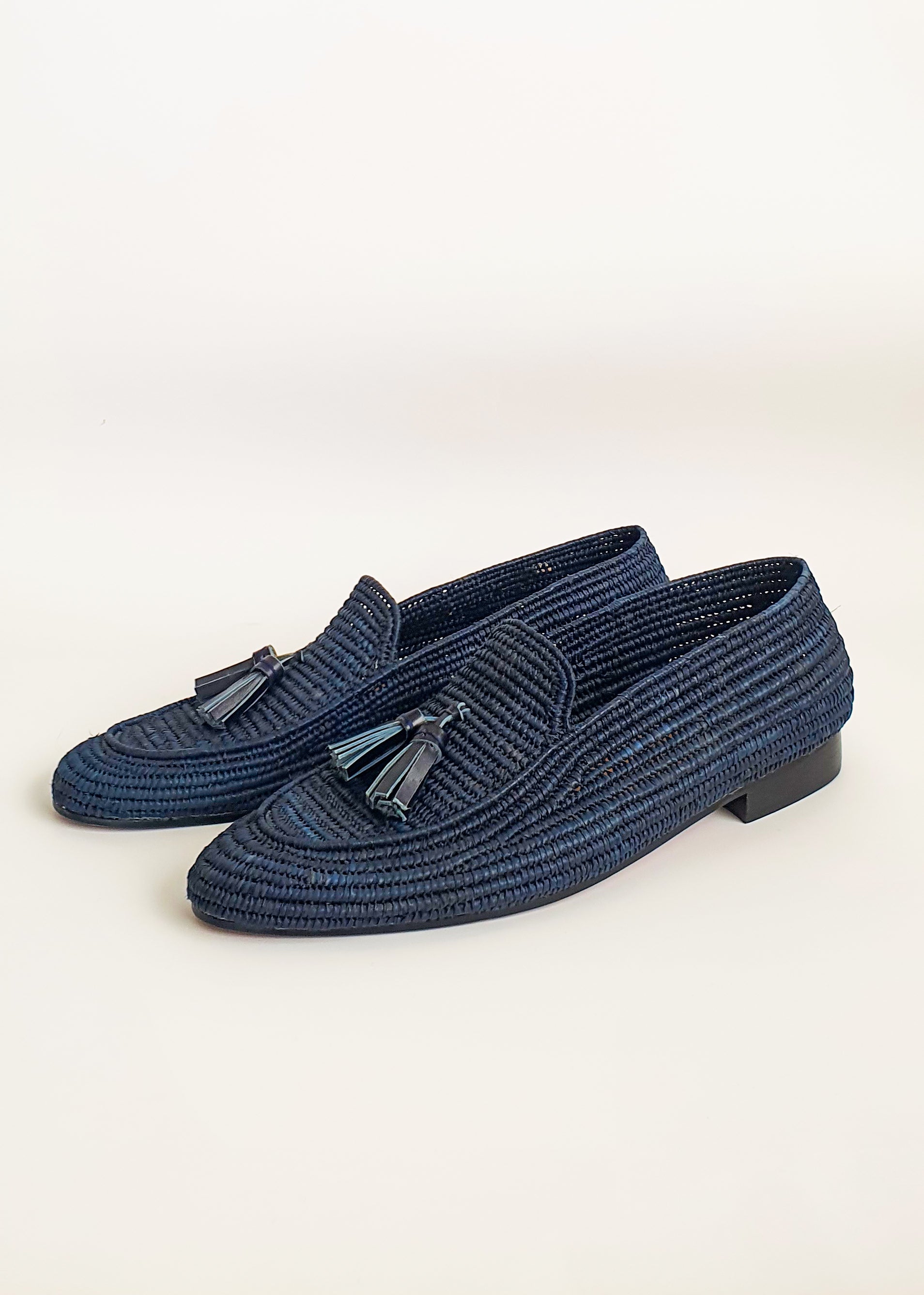 The upper part is handmade from palm leaves also known as raffia. It is fully handmade where the raffia is weaved by women and then the soles are assembled from high end real leather. The insoles are also made from very good quality real leather.